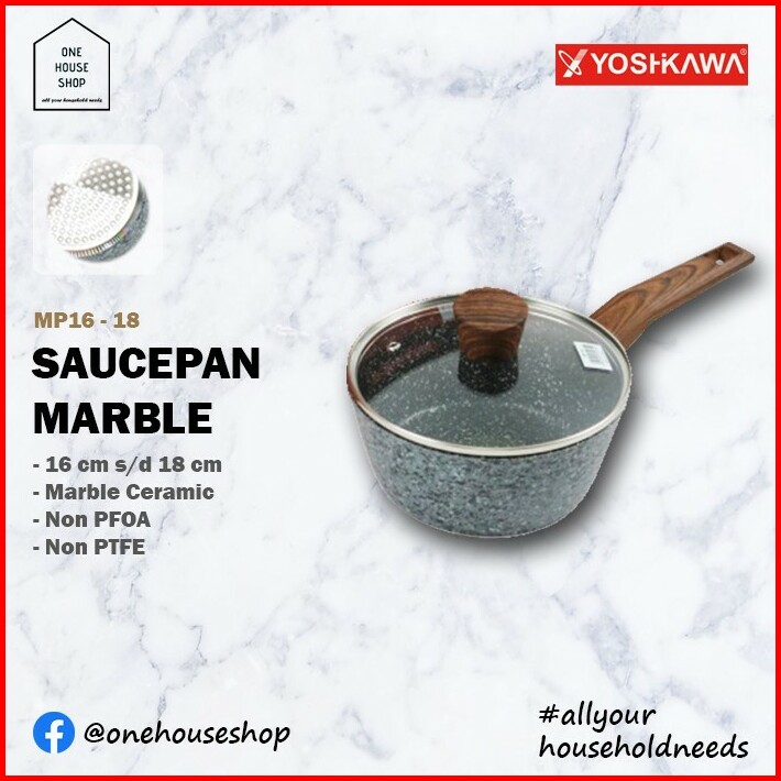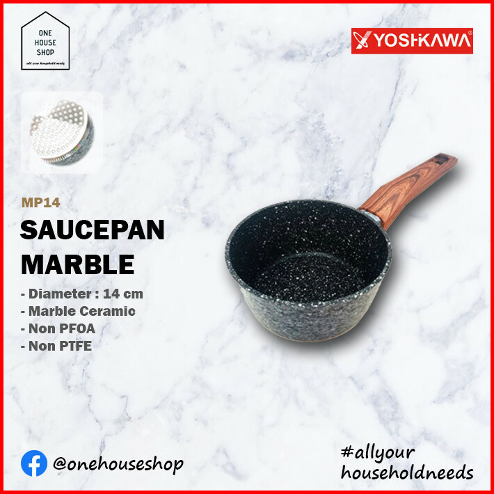 Panci Saucepan Marble Ceramic Anti Lengket Yoshikawa Premium