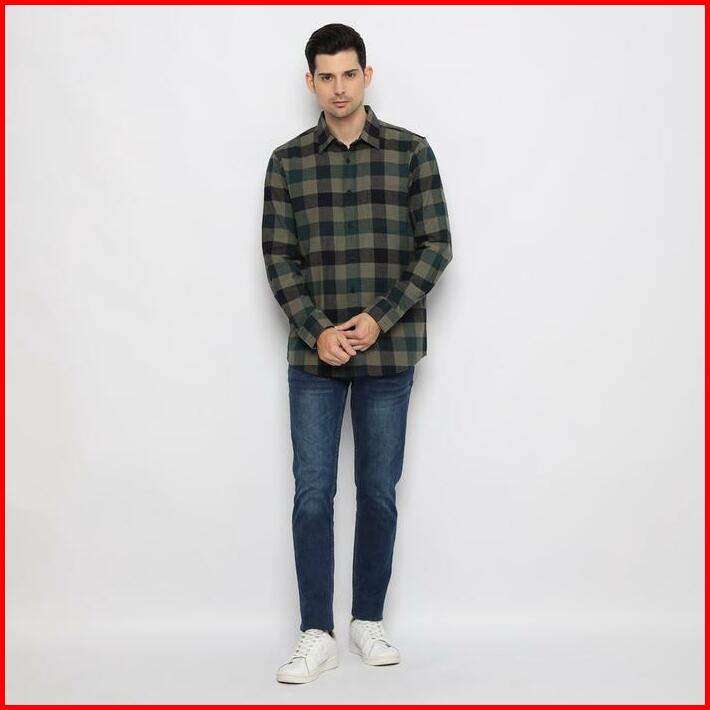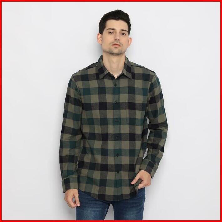Platini Kemeja Pria Flanel Panjang Hijau Tua 76369