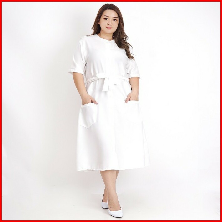 Dress Wanita Big Size Jumbo 01 Putih White Baju Hamil Menyusui Casual Fashion Korea Style Model Terbaru Kekinian Dress K