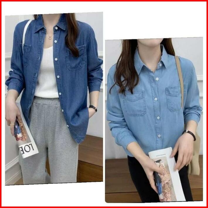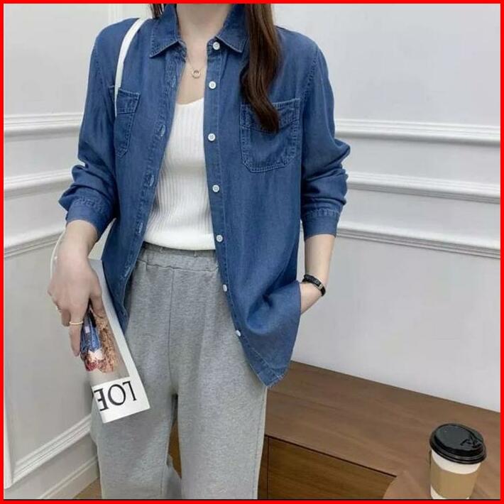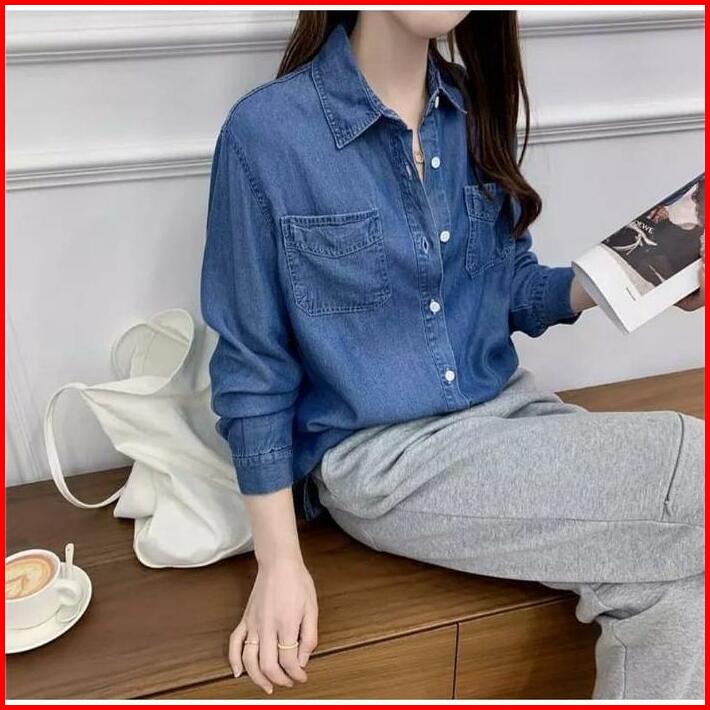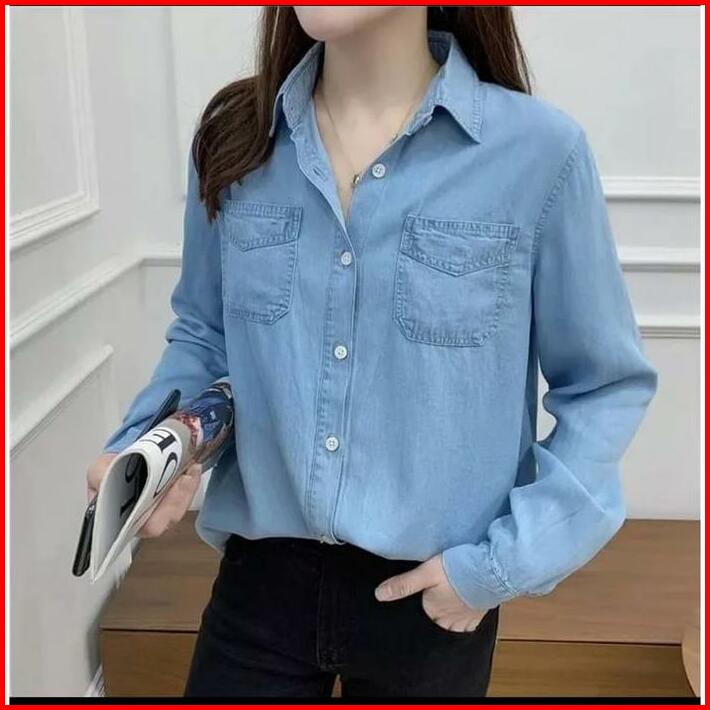 Kemeja Jeans Atasan Wanita Lengan Panjang