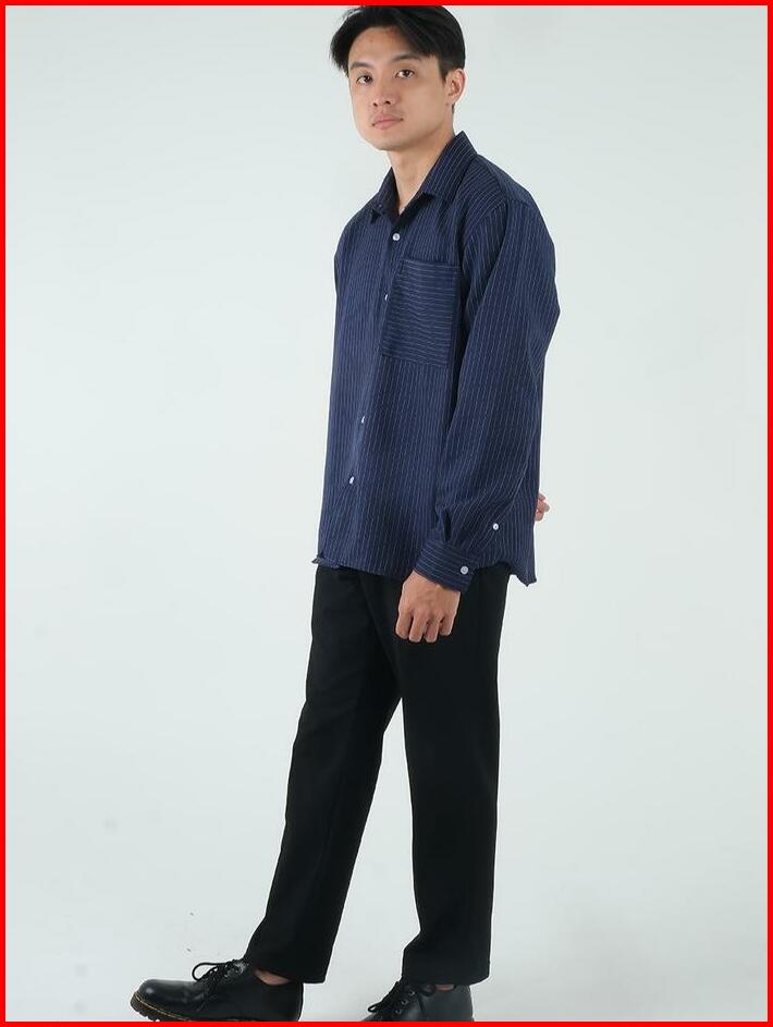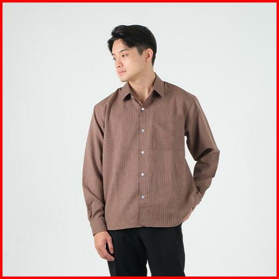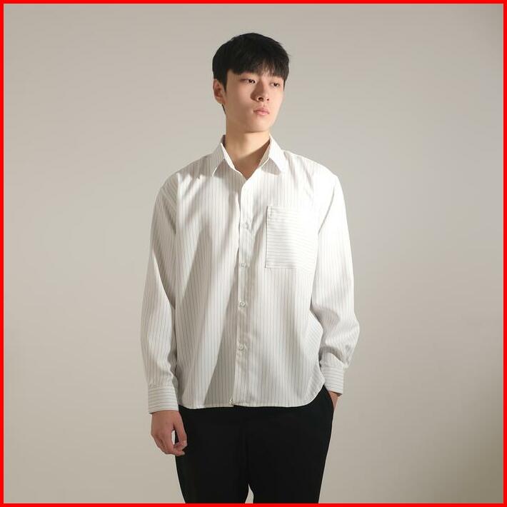 Fukustudio Linear Long Sleeve Shirt Kemeja Lengan Panjang Kemeja Pria Polos Bergaris Stripes