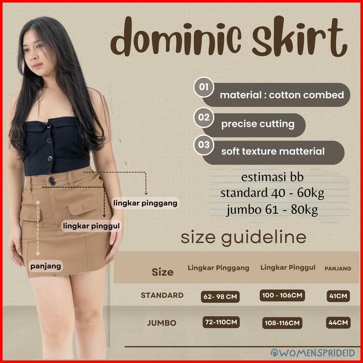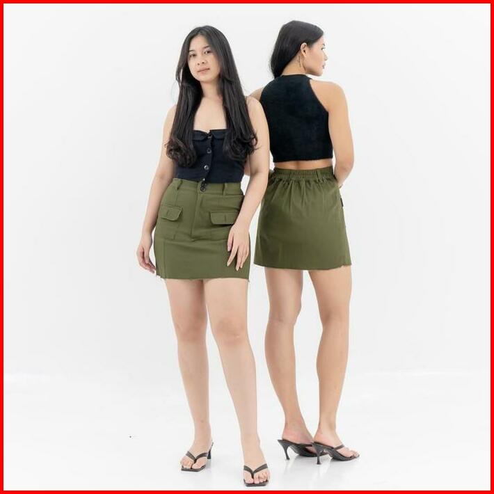 Dominic Cargo Skirt Mini High Wait Rok Kargo Pendek Karet Pinggang Belakang Rok Span Wanita Casual Dewasa Hitam Cewek Ba