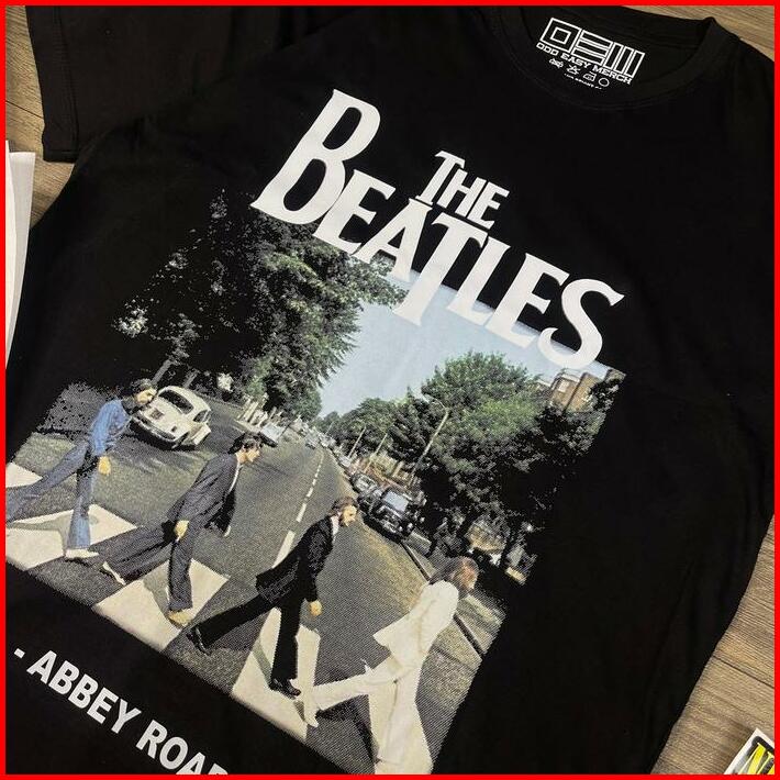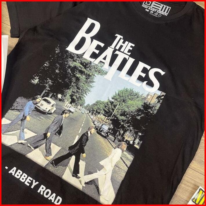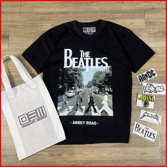T-shirt Kaos The Beatles Abbey Road Free Bag Bonus Sticker High Tebal Digital Logo Wanita Distro Combed Pria Baju Hitam