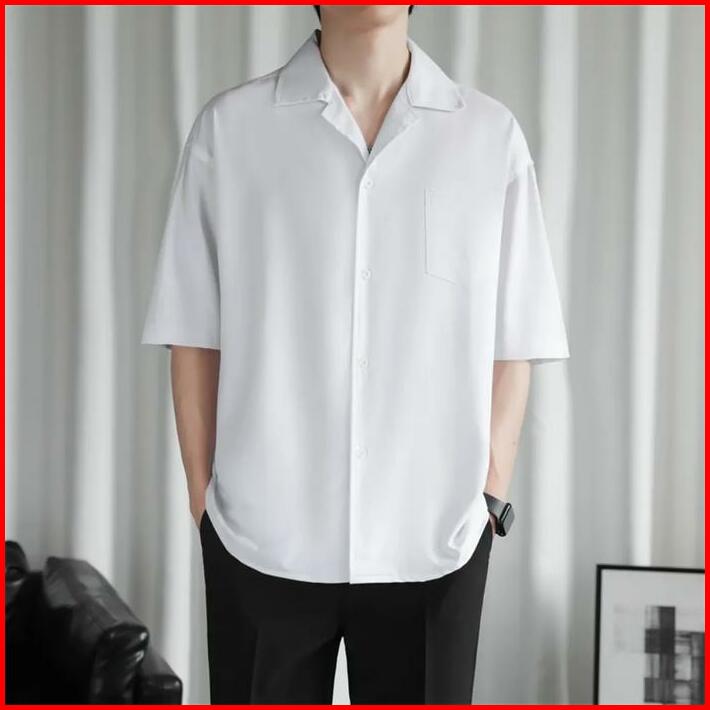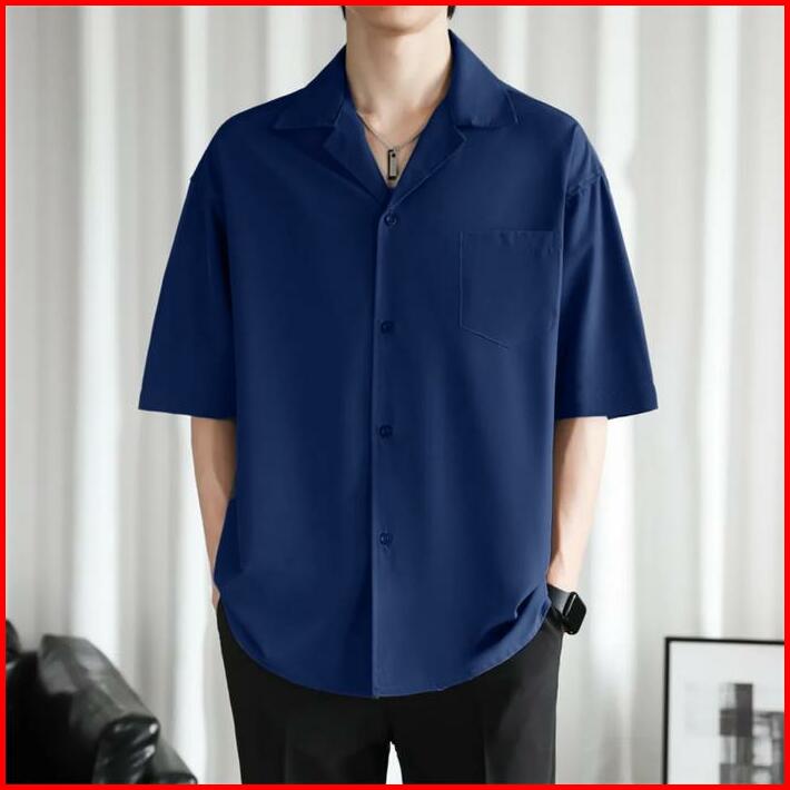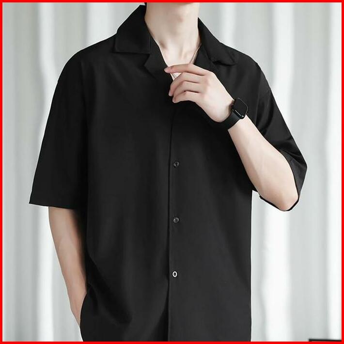 Kemeja Hawai Polos Pria Lengan Pendek V-neck Baju Atasan Santai Casual Lembut Nyaman Distro Rayon