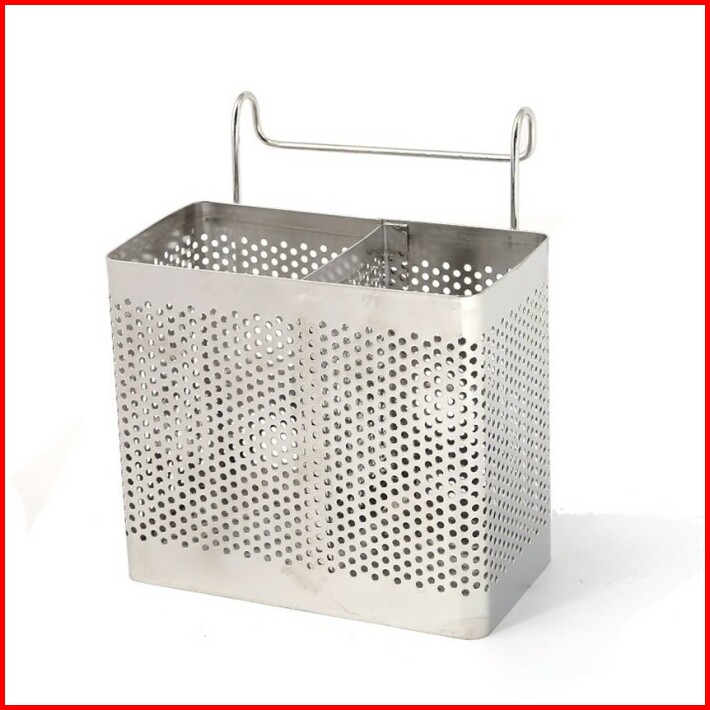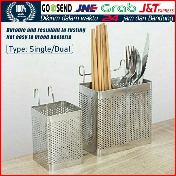 Tempat Sendok Garpu Sumpit Gantung Sekat Stainless Double Ekonomis
