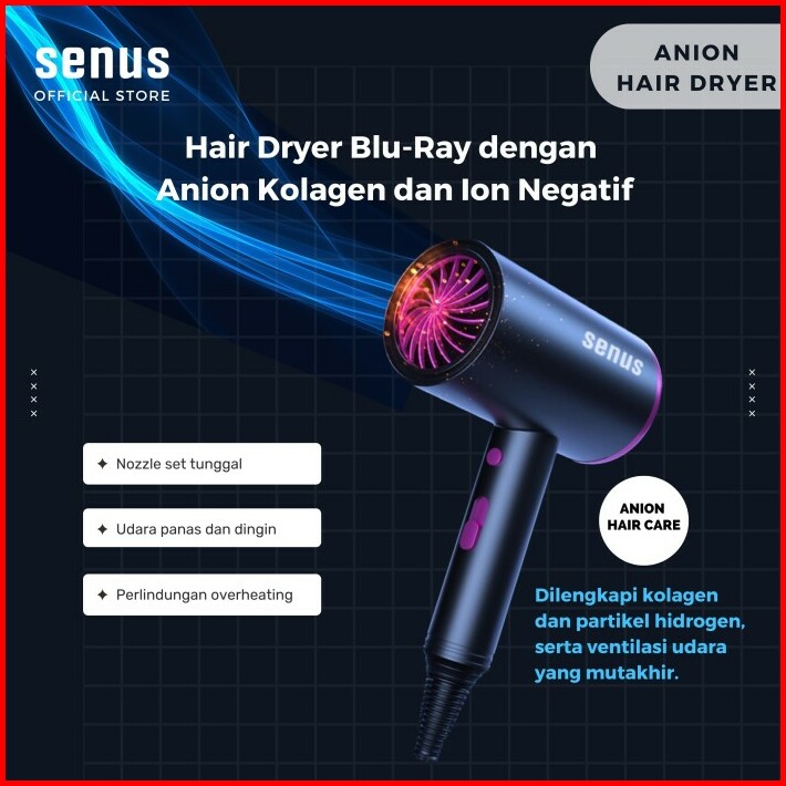 Senus Hairdryer Pengering Rambut Anion Salon Haircare Hot Wind Ionik