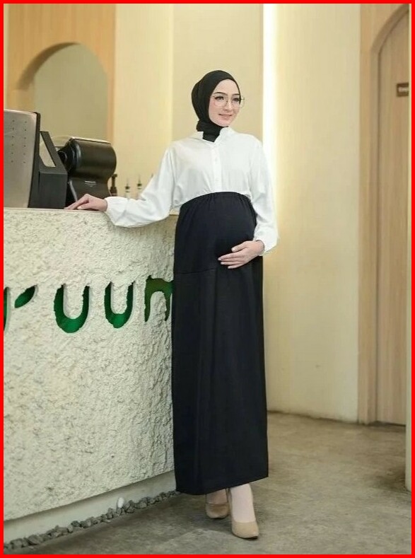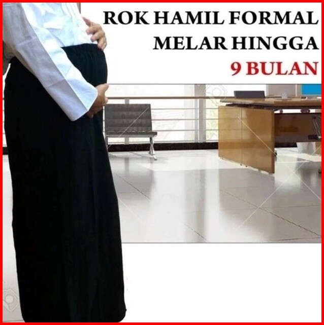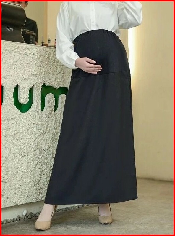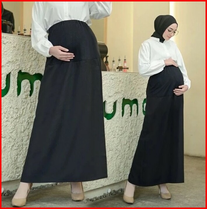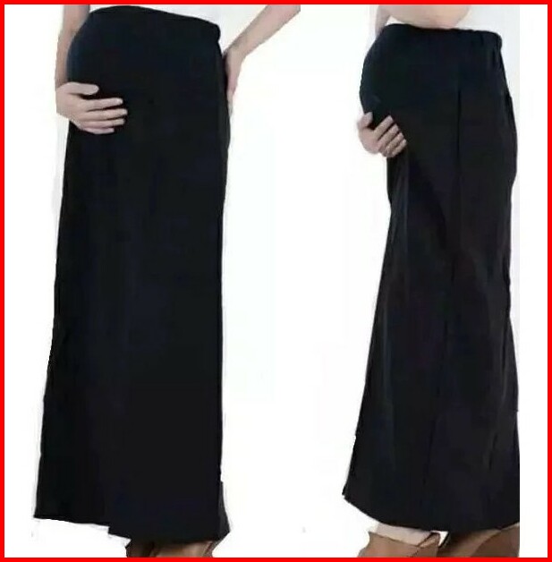 Rok Panjang Hamil Hitam Wanita Katun Kantong Perut Kehamilan Materna Kerja Kantor Casual Formal
