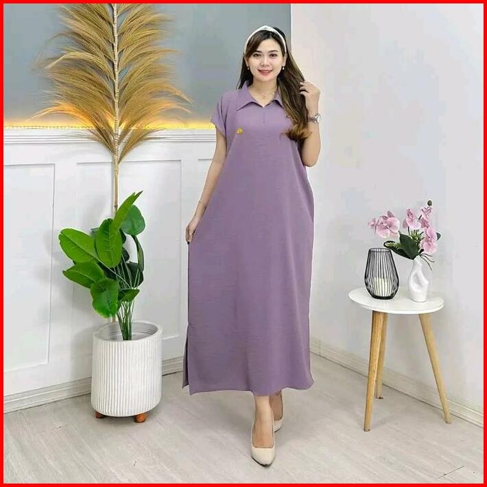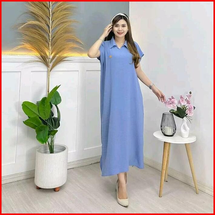 Dress Jumbo Ld120 Pb120 Dress Crinkle Model Kerah Korean Style Kekinian Daster Hamil Murah Meriah