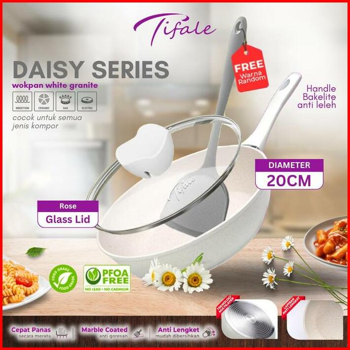 Celyhome Free Spatula Tifale White Granite Coated Series Fry Pan 20cm Anti Lengket Handle Bakelite Silicone Anti Leleh P
