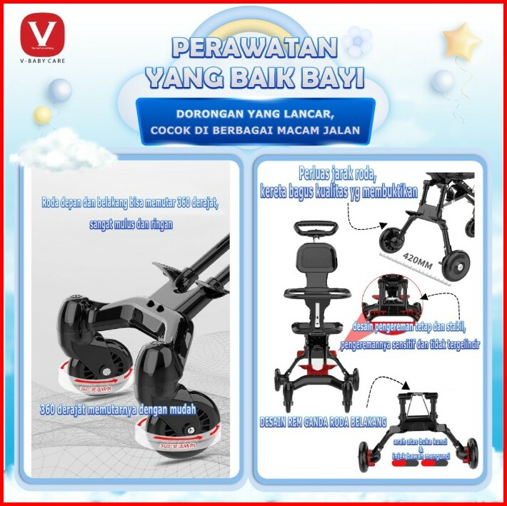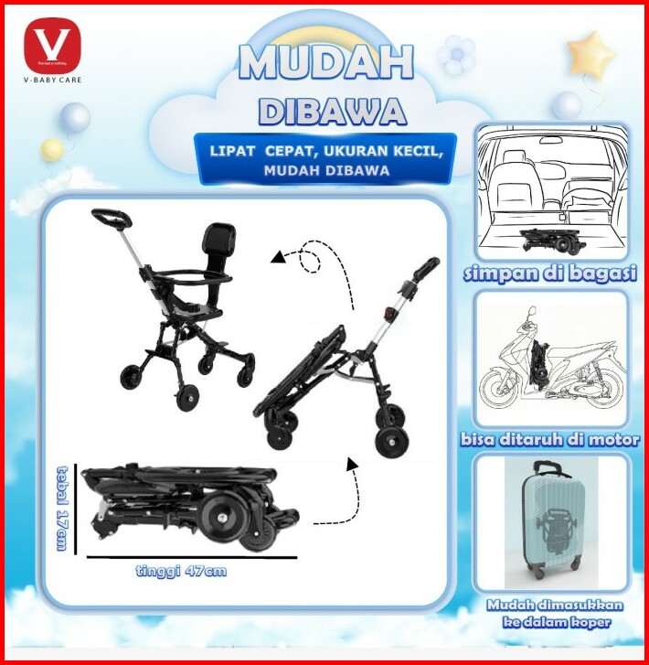 V-babycare Stroller Baby Kereta Dorong Balita Lipat Magic Vbaby-q1