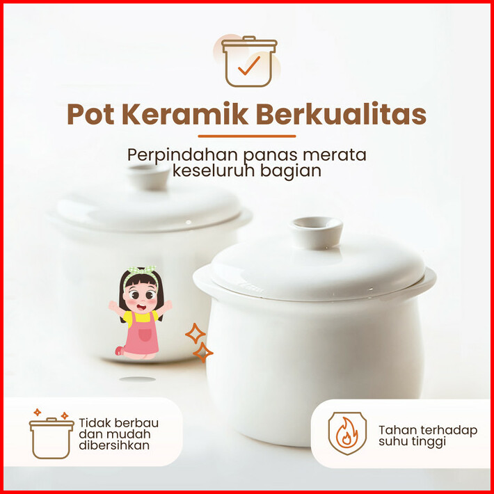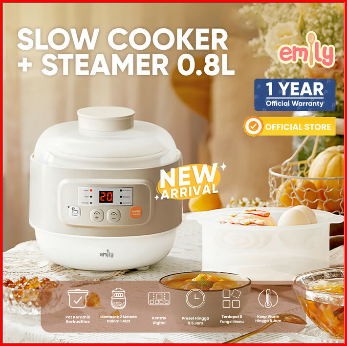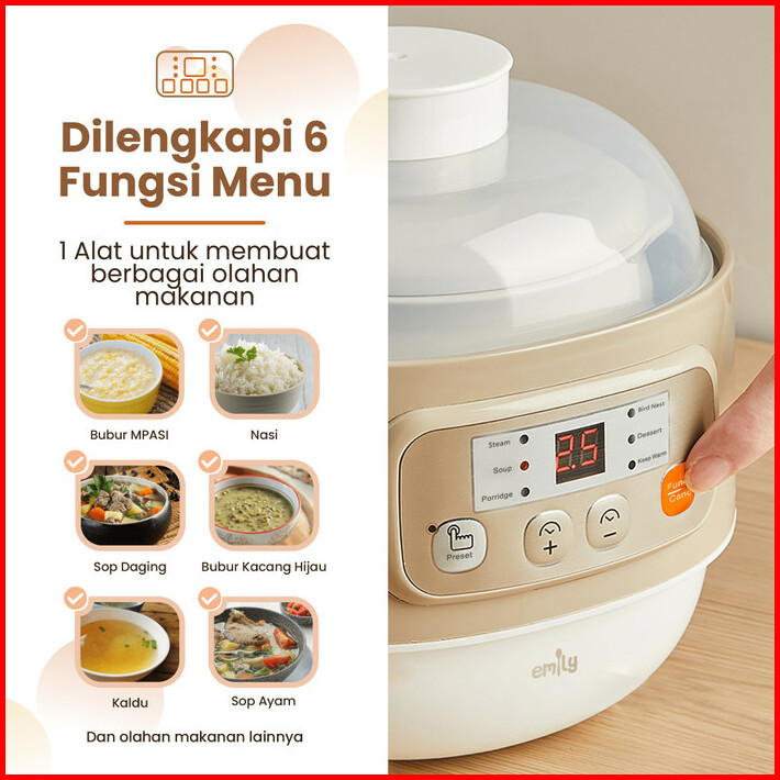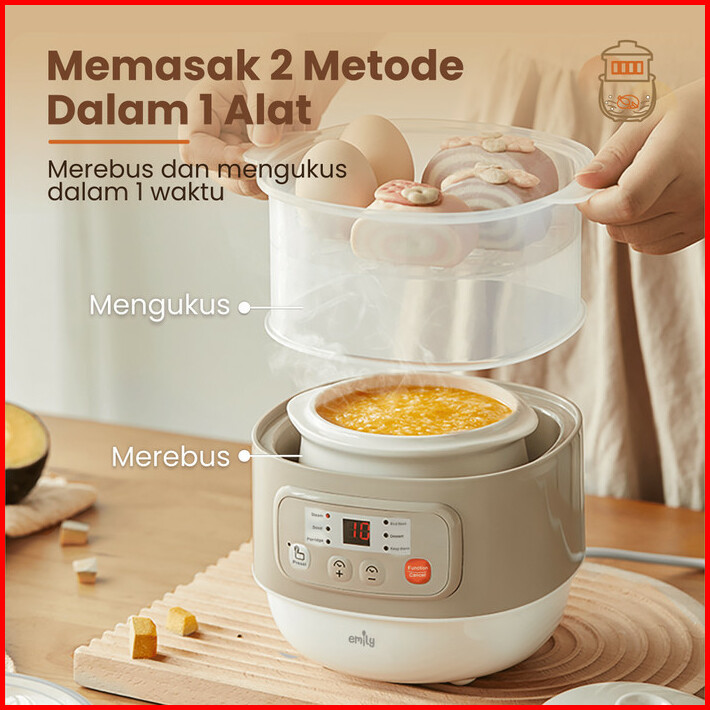 Emily Slow Cooker Steamer 0.8l Ceramic Panci Keramik Baby Family Food Maker Mpasi Cooker Panci Mpasi
