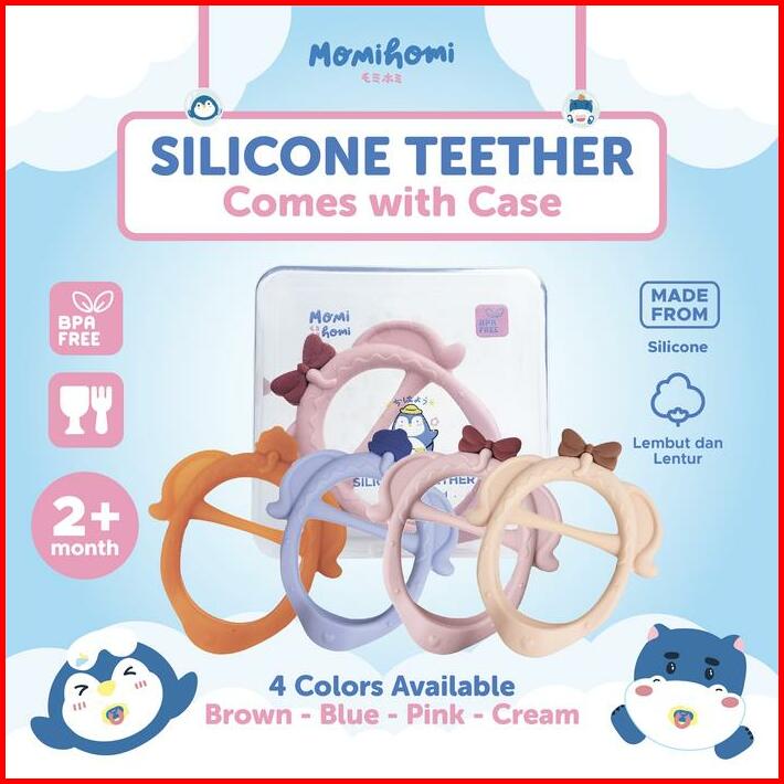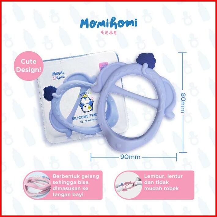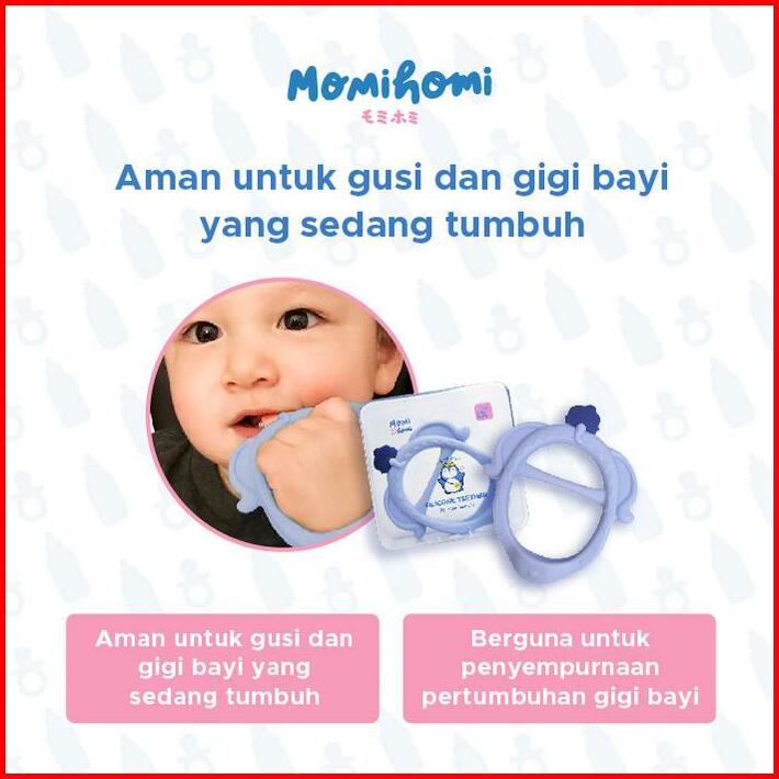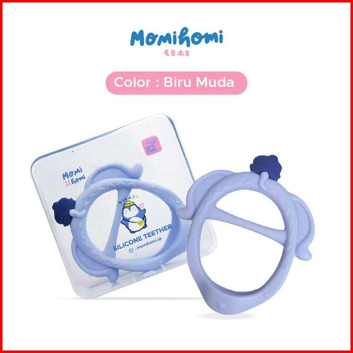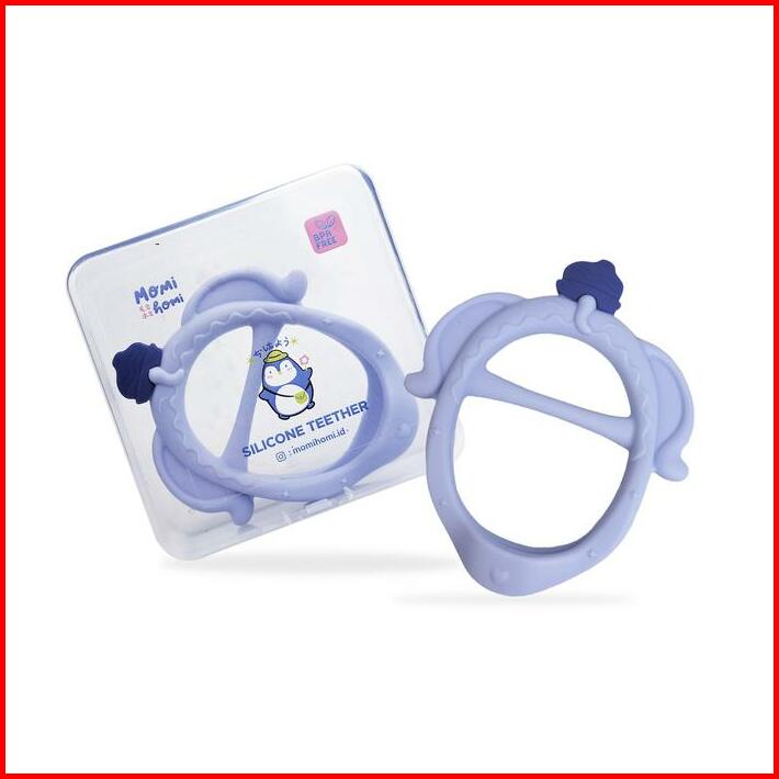 Momi Homi Teether Pita Silicone Baby Elephant Silikon Empeng Gigitan Bayi Bentuk Gelang Premium Case Bpa Free Biru