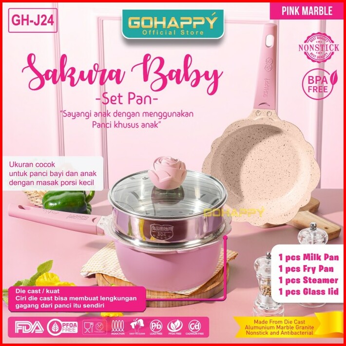 Peralatan Panci Set Bayi Pink Sakura Flower Baby Mpasi Cookware