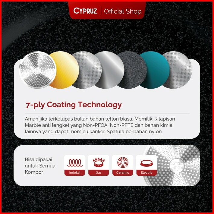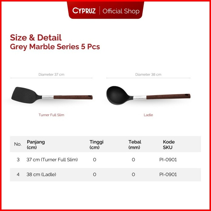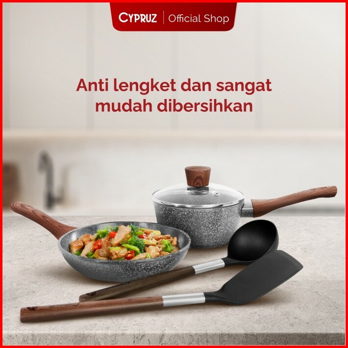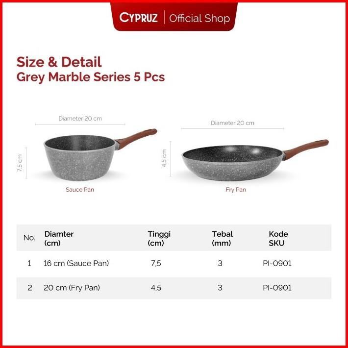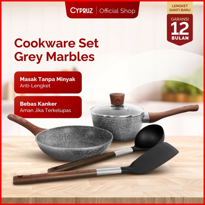 Cypruz Cookware Set Grey Marble Basic Panci Set Anti Lengket 5 Pcs
