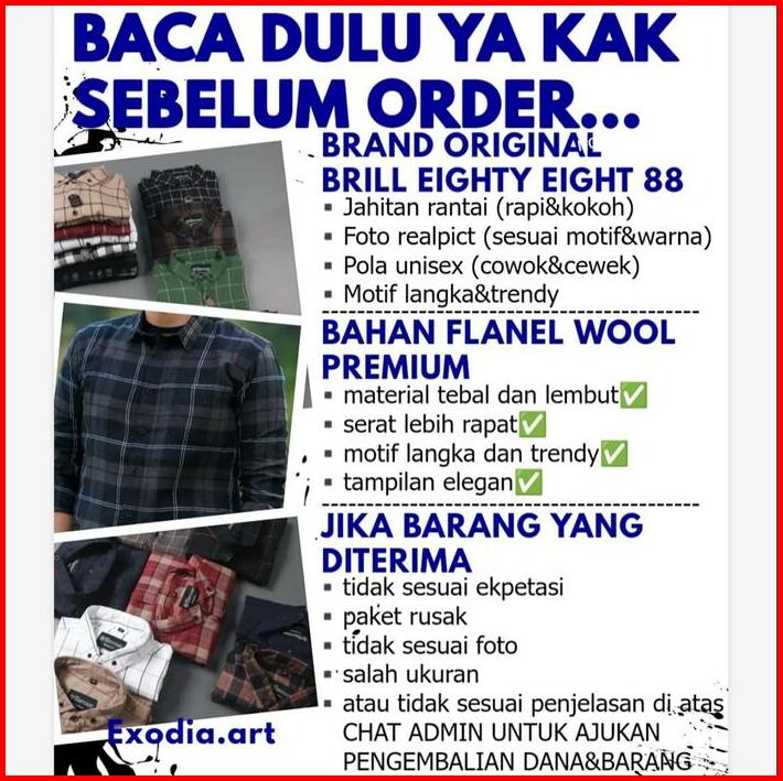 Brill Eighty Eight 88 Kemeja Flanel Wool Premium Lengan Panjang Pria Dan Wanita Cewek Cowok Pola Unisex Exodia Art Poton