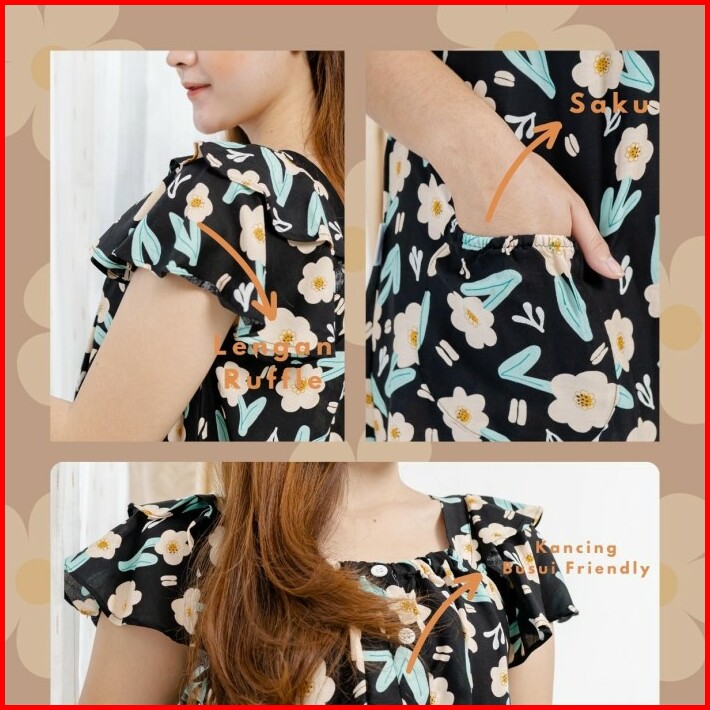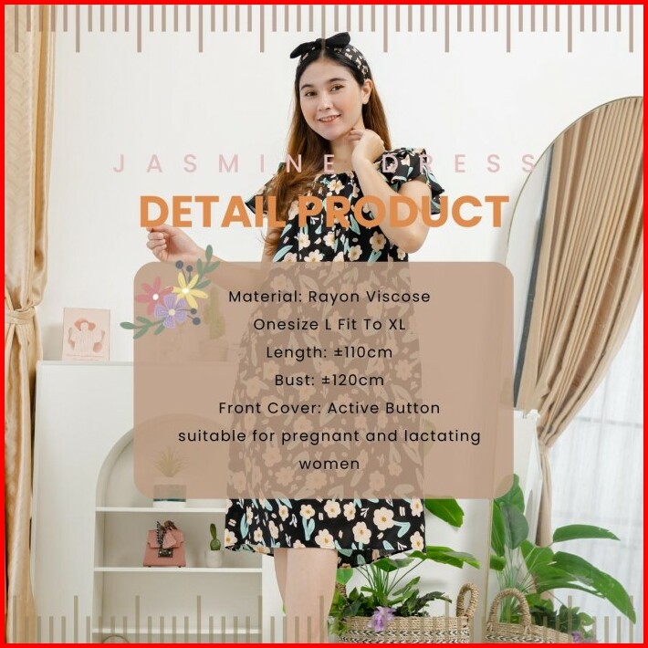 Jasmine Dress Hamil Dan Menyusui Rayon By. Ademin.co Daster Kekinian