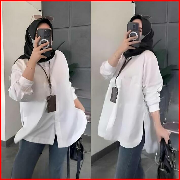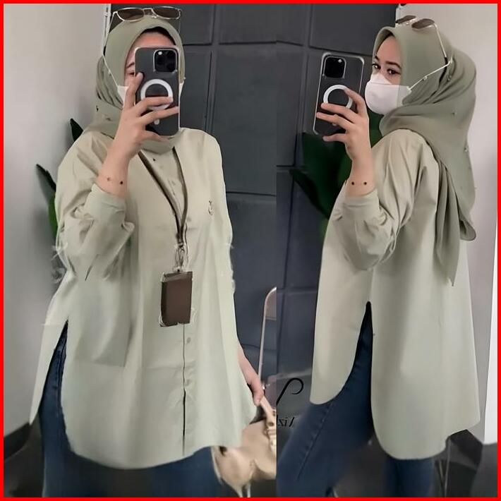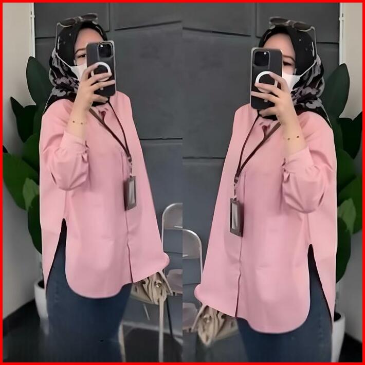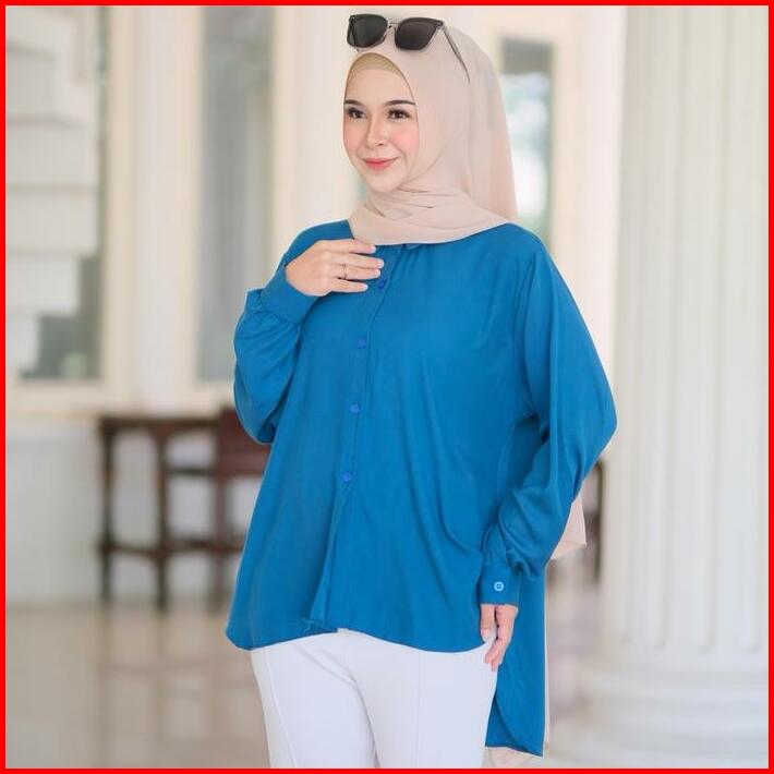 Atasan Wanita Kemeja Jumbo Bahan Rayon Twill Size L Xl Xxl 4l Sampai Ld 140cm Lunna Shirt Kemeja Korean Style Murah Polo