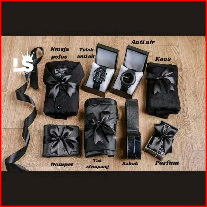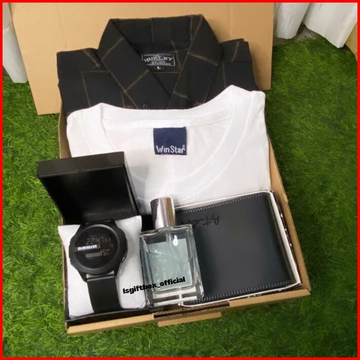 Hampers Kado Giftbox Cowok Ulang Tahun Anniversary Dengan Kemeja Flanel Kaos Pendek Jam Anti Air Dompet Pendek Parfum Da