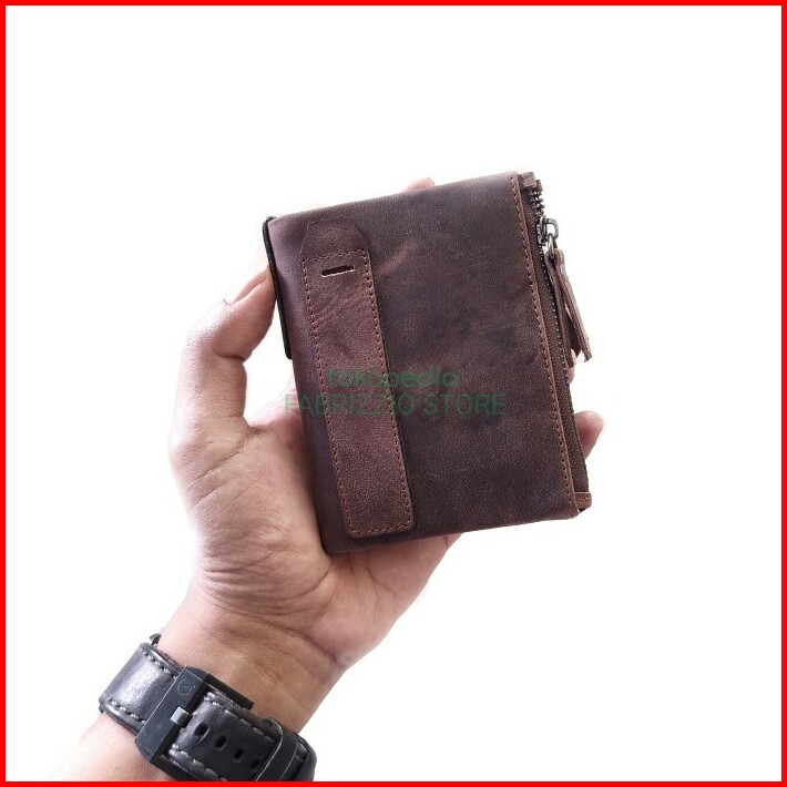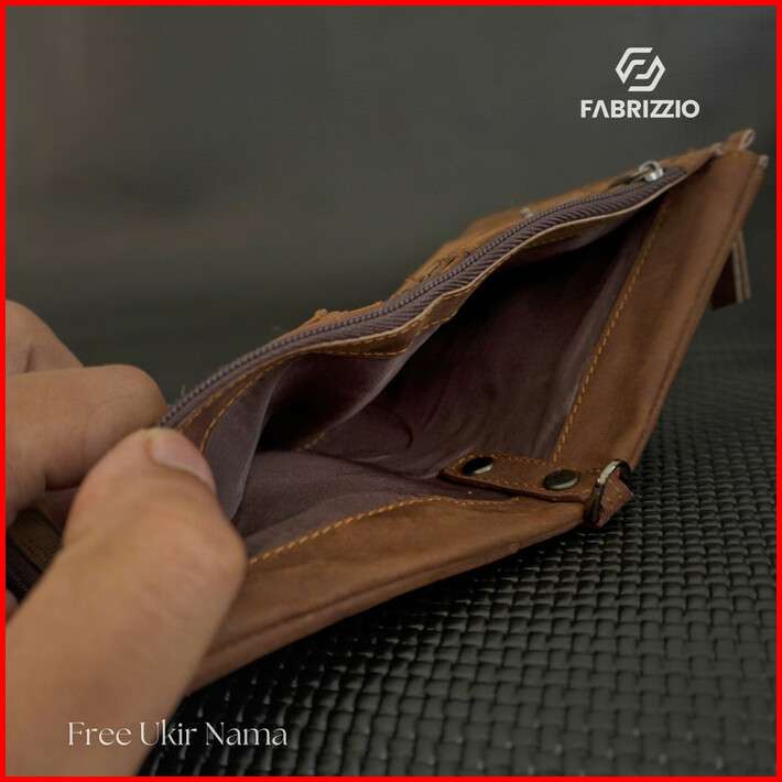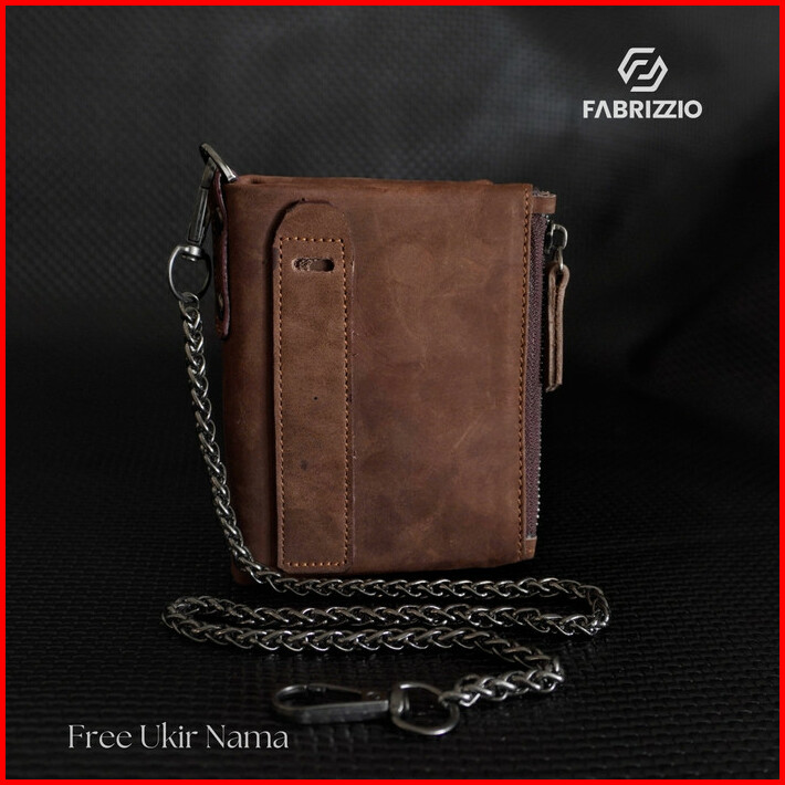 Fabrizzio Dompet Pria Kulit Dobel Zipper Rantai Dompet Cowok