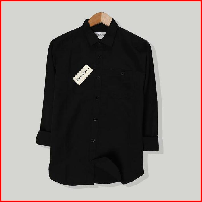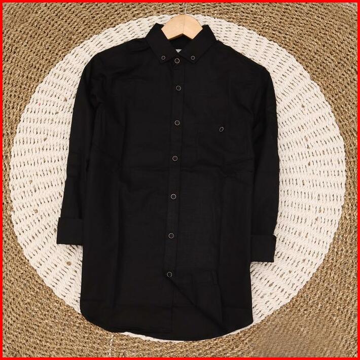 Kemeja Polos Lengan Panjang Hitam Pria Flannel Distro Slim Fit Formal Casual