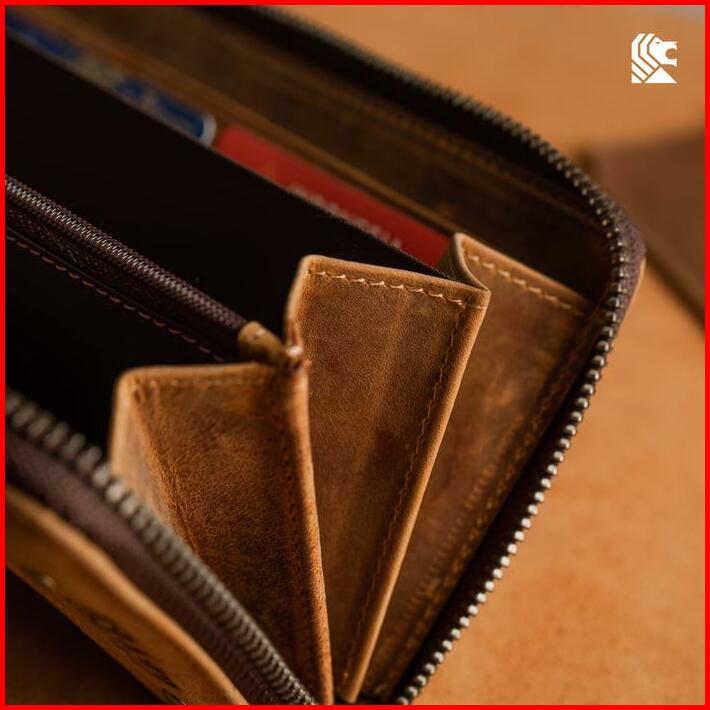 Reven Abimana Dompet Panjang Resleting Pria Kulit Sapi Crazy Horse Laki Multi Kompartemen 12 Slot Kartu Ruang Uang Kerta