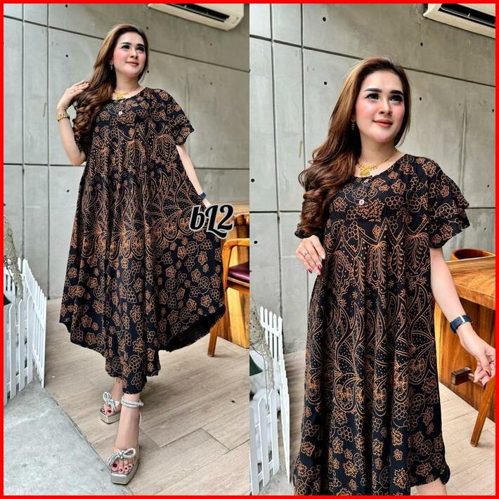 Daster Payung Busui Klok Jumbo Bahan Rayon Tebal Motif Abstrak Terbaru 2024 Dress Ibu Hamil Kekinian Daster Rumahan Nyam