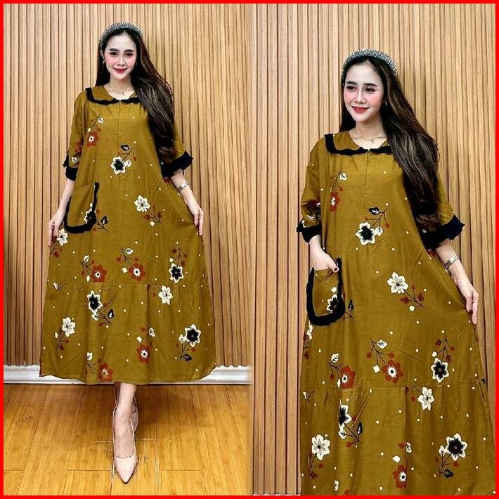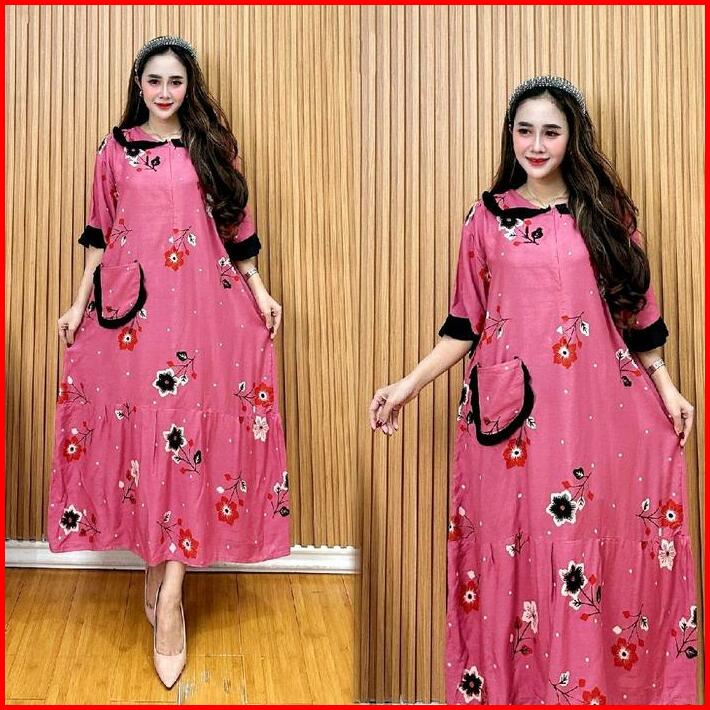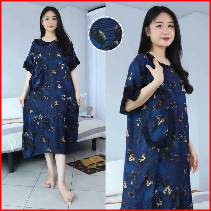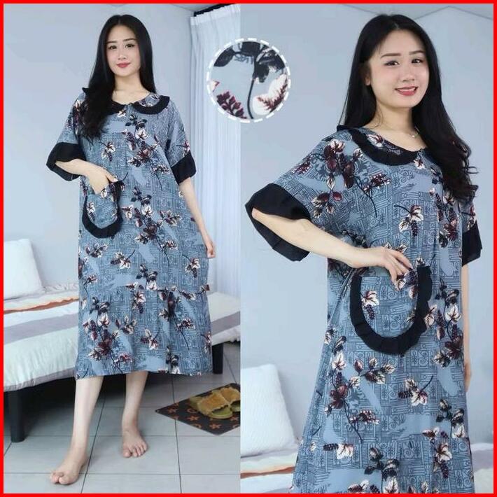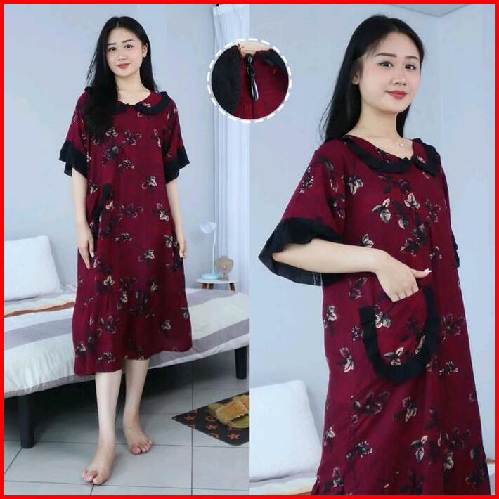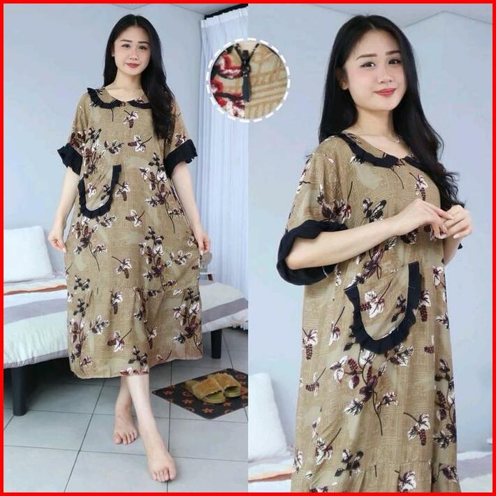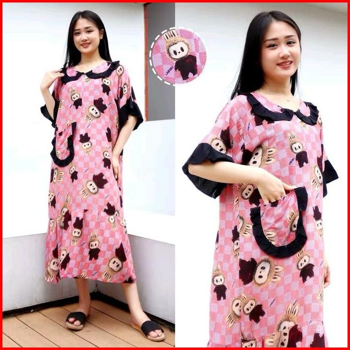 Daster Labubu Jumbo Resleting Depan Busui Ld 120 Rempel Lembut Nyaman Rayon Bumil Dress Ibu Hamil Lengan Katun