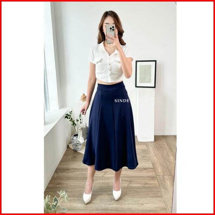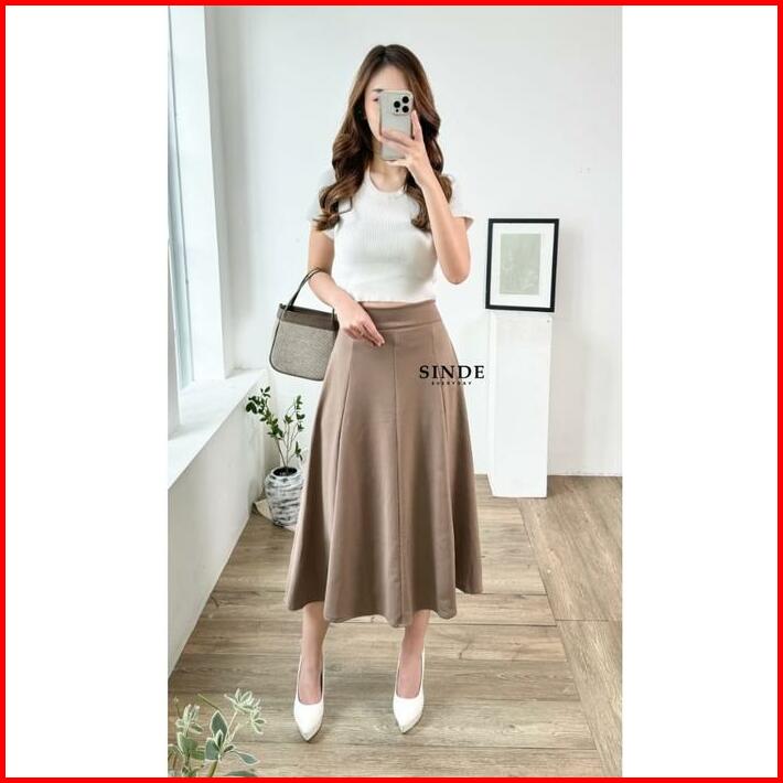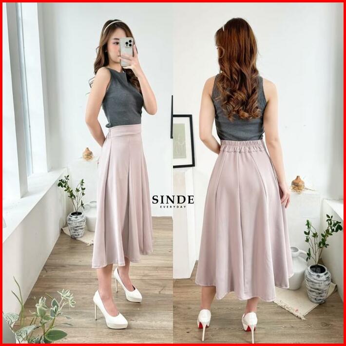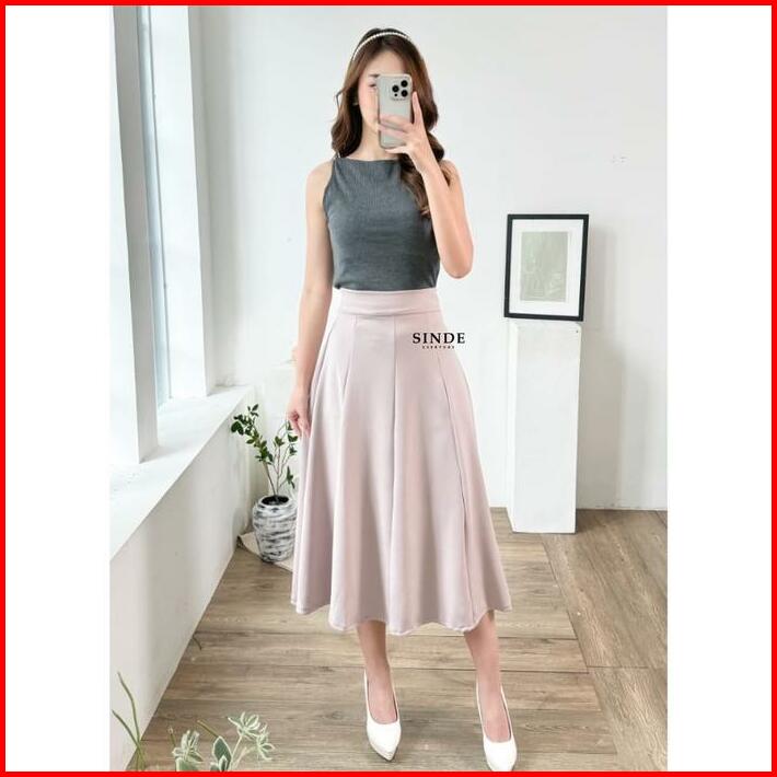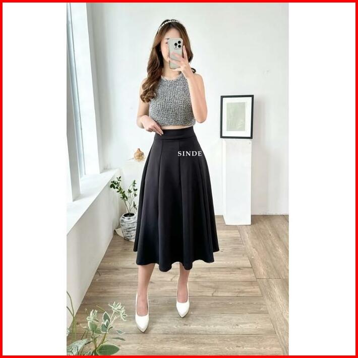 Sinde Rok Audy Skirt Midi Flare Wanita Panjang 7 8 Cewek Korean Style Kekinian