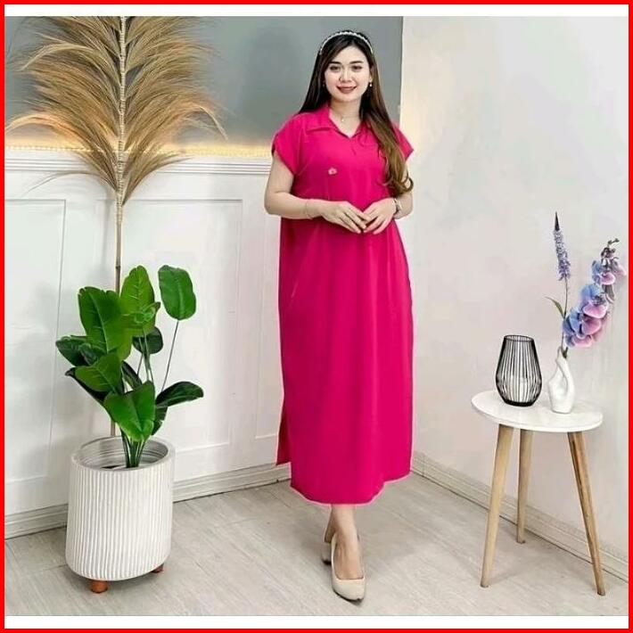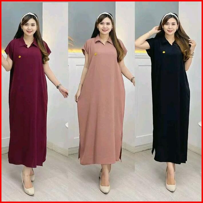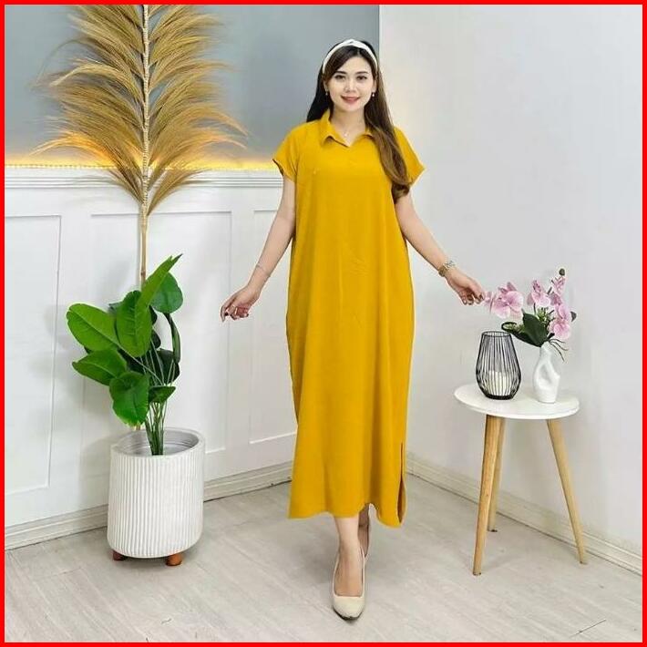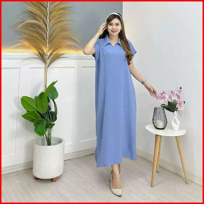 Dress Jumbo Ld120 Pb120 Crinkle Airflow Bumil Daster Crinkle Model Kerah Korean Style Kekinian Hamil Wanita Busui