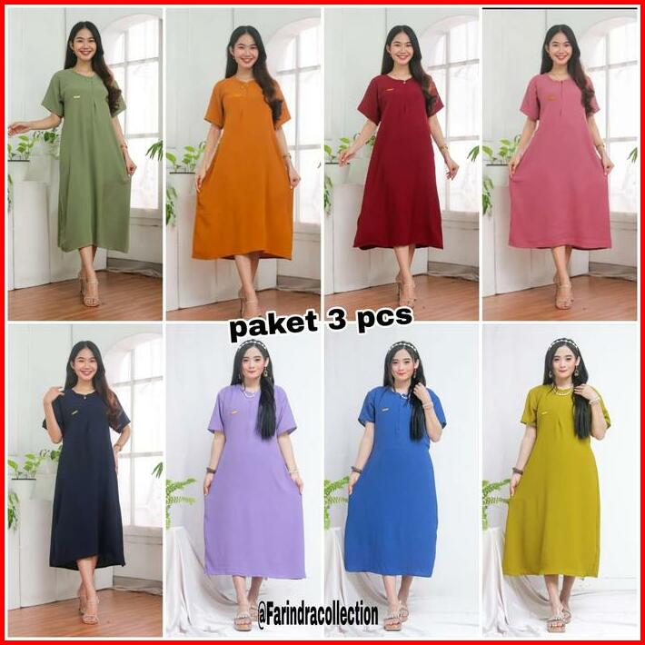 Paket Hemat Daster Isi 3 Pcs Daster Polos Harian Wanita Busui Rayon Dress Rayon Dress Bumil Midi Ibu Hamil