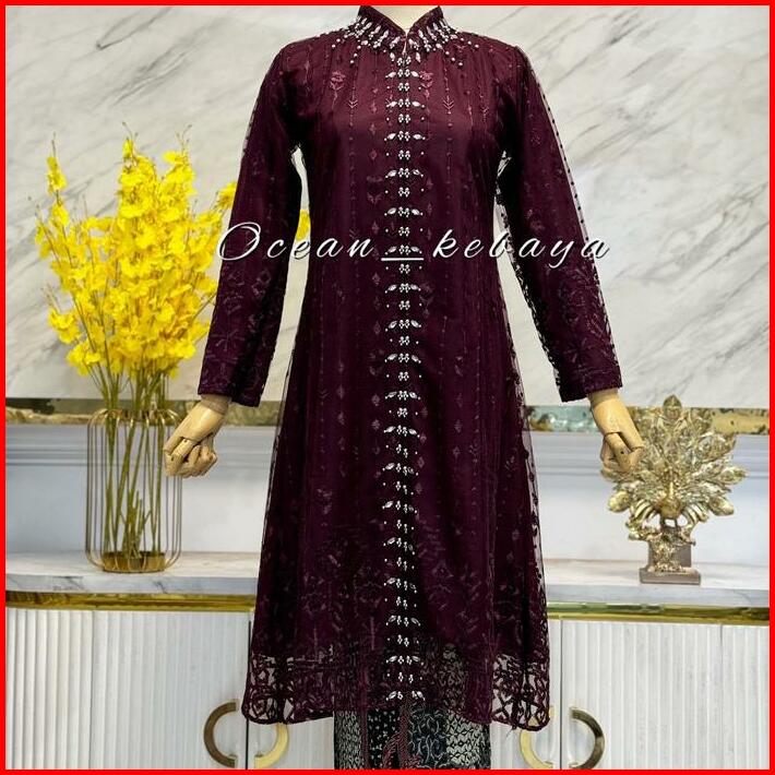 Kebaya Abaya Krah Sanghai Payet Motif Lily Wanita