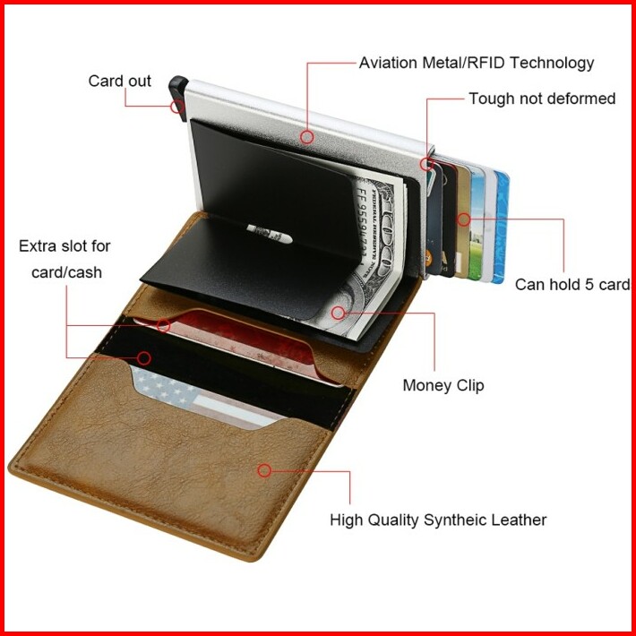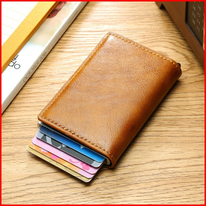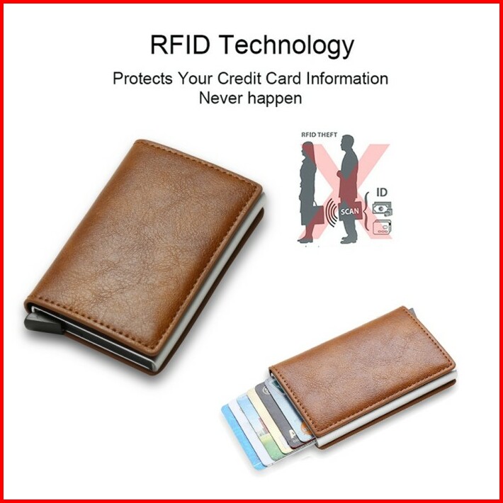 Dompet Kartu Pria Wanita Kulit Pu Rfid Protector Card Holder Anti Theft Card Wallet Import