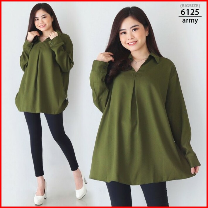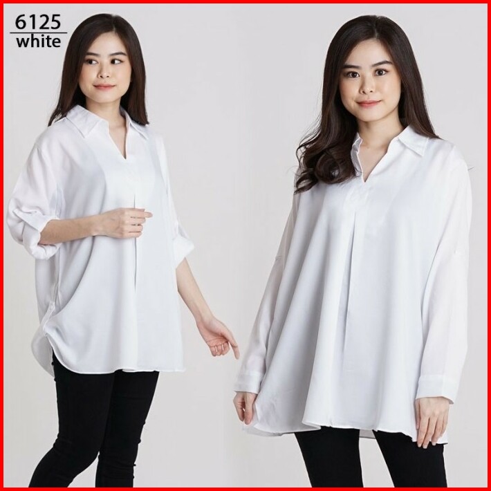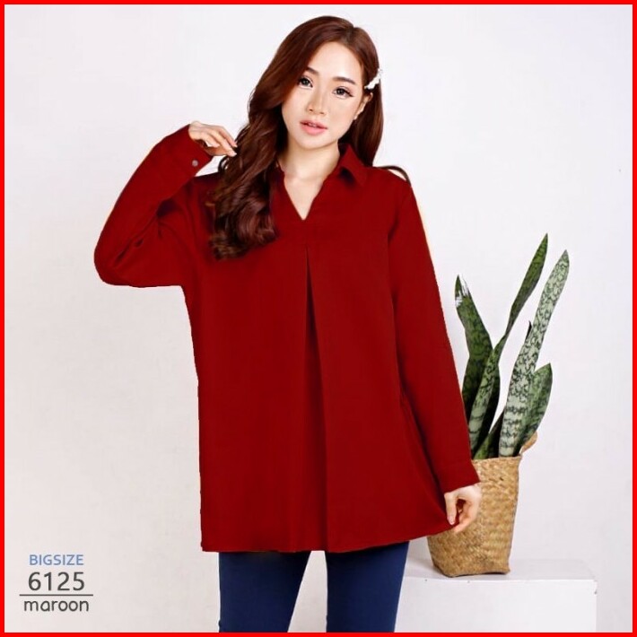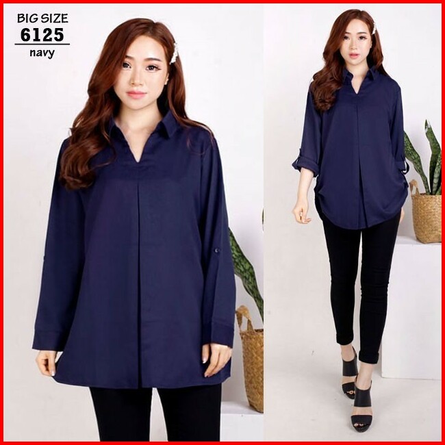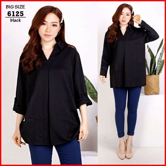Blouse Kemeja Wanita Jumbo Big Size 6125 Xxl Xxxl Kerja Kantor Casual Baju Hamil Kekinian Fashion Korea Style V Neck