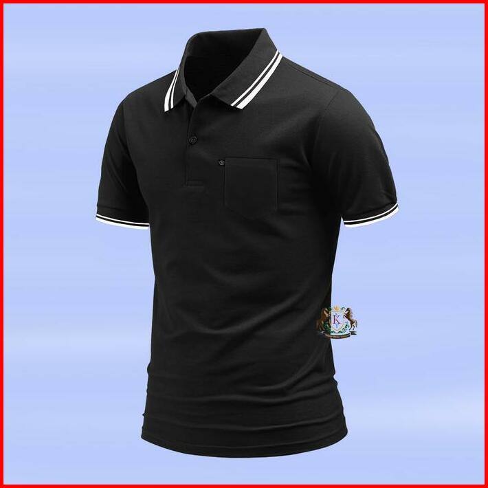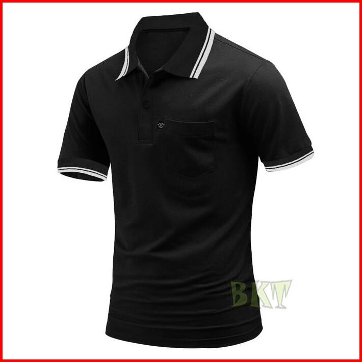 Bkt Polo Shirt Saku Kaos Kerah Lis Baju Grosir Atasan Pria Dewasa Murah Lengan Pendek Katun Distro Casual Hitam Cowok