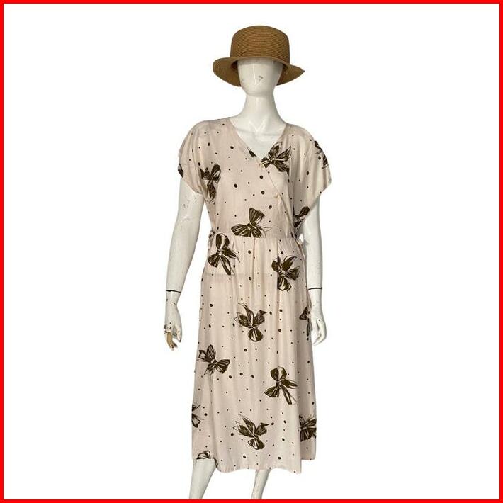 Daster Atasan Wanita Kimono Panjang Motif Pita Kancing Aktif Bumil Busui Bahan Rayon Bajunya Emak Ibu Hamil