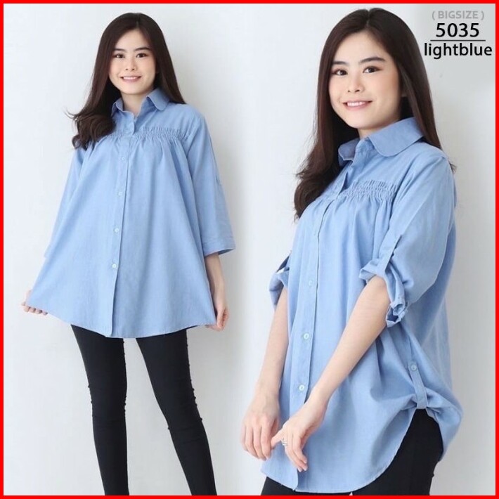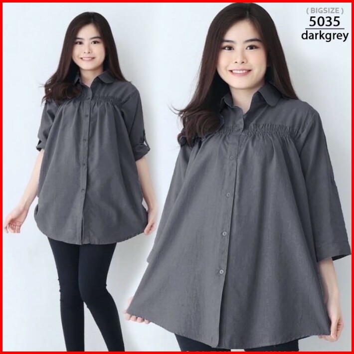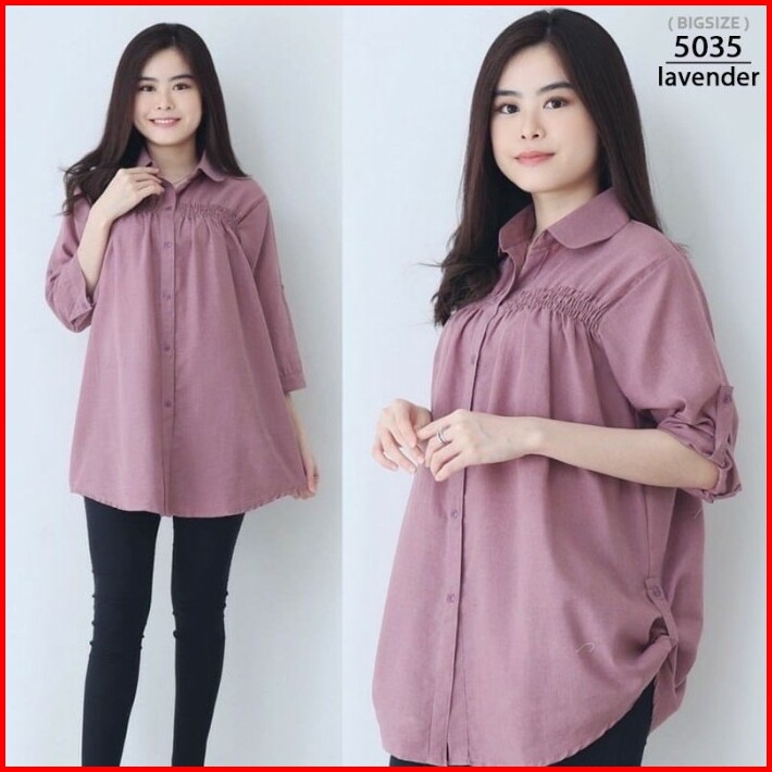 Kemeja Wanita Atasan Baju Kerja Kantor Kasual 5053 Jumbo Over Big Size Baju Hamil Xxl Xxxl Kekinian Model Terbaru Lengan