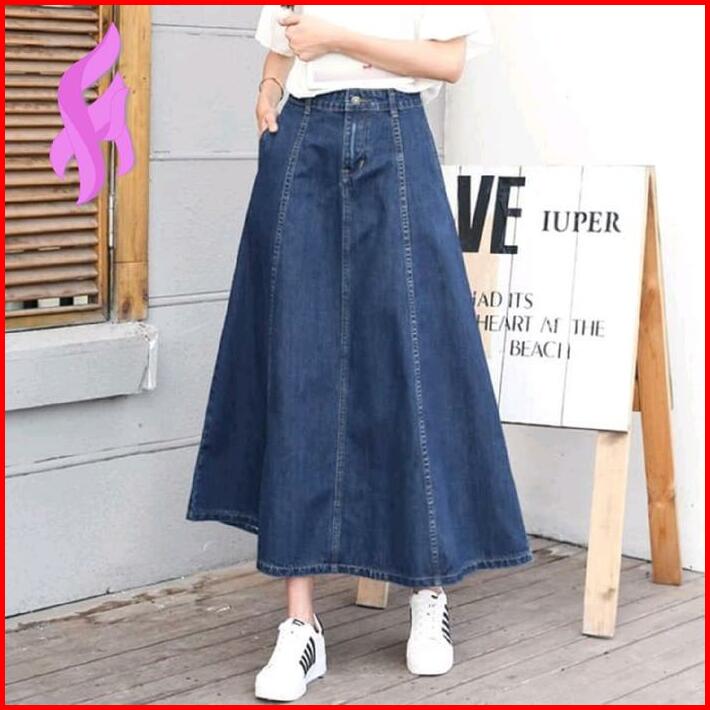 Jisso Rok Jeans Mayung Premium Wanita A- Line 7 8 Model Payung Pinggang Karet