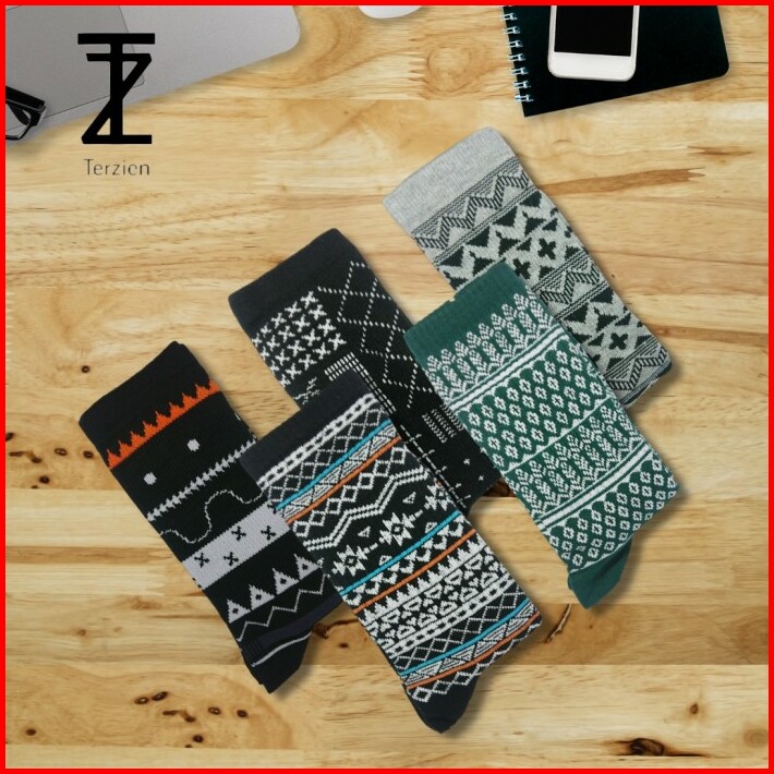 Kaos Kaki Panjang Motif Tribal Pria Wanita 1 Box Isi 5