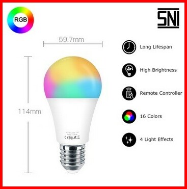 Emico Lampu Bohlam Led Rgb Remote 7 Watt E27 Sni Warna Warni Rgbw 7w