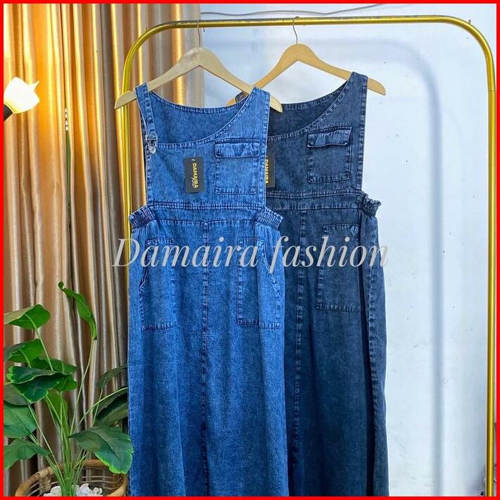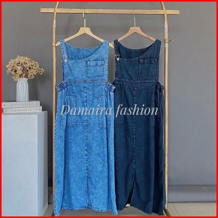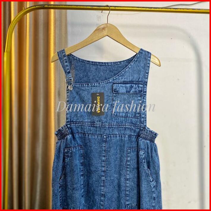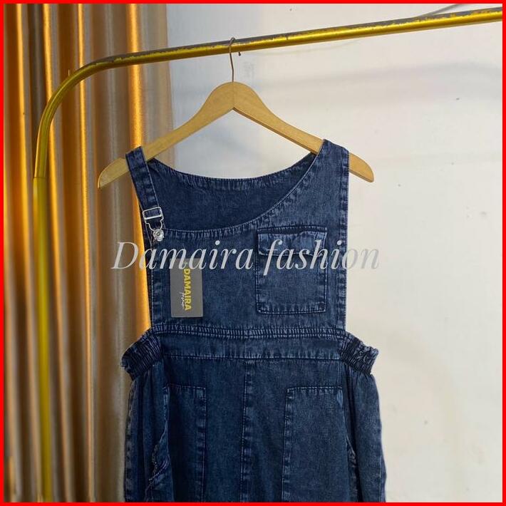 Kirana Overall Jeans Cargo Midi Dress Snow Jumpsuit Rok Kodok Wanita