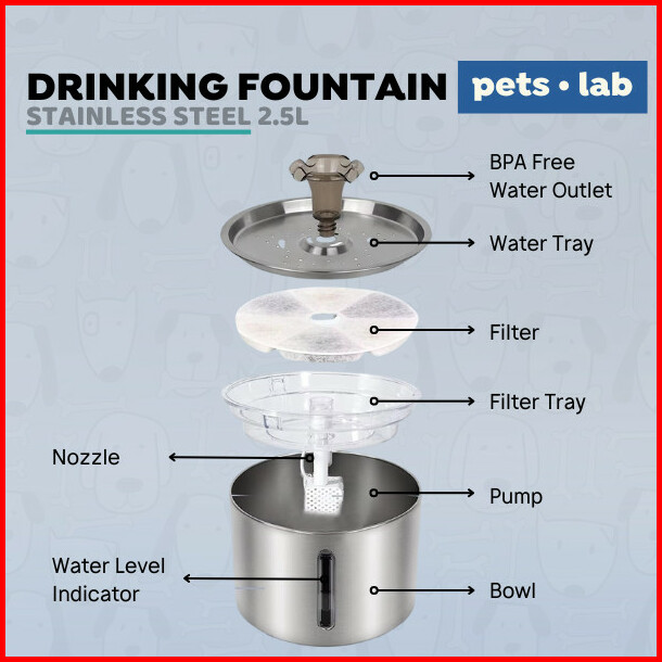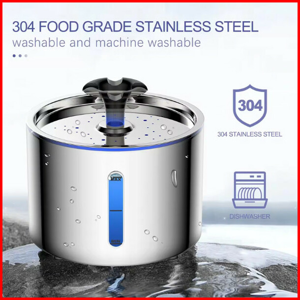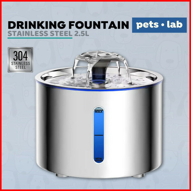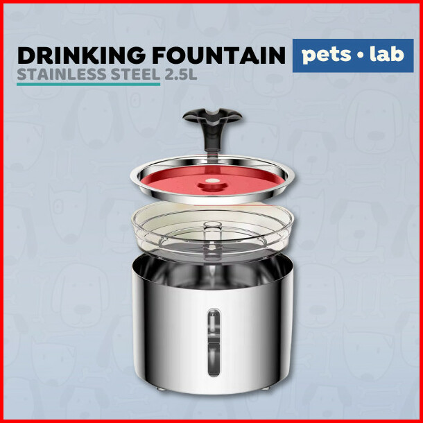 Pet Water Fountain Stainless Steel Tempat Minum Hewan 2.5 Liter Anjing Kucing Higienis Filter