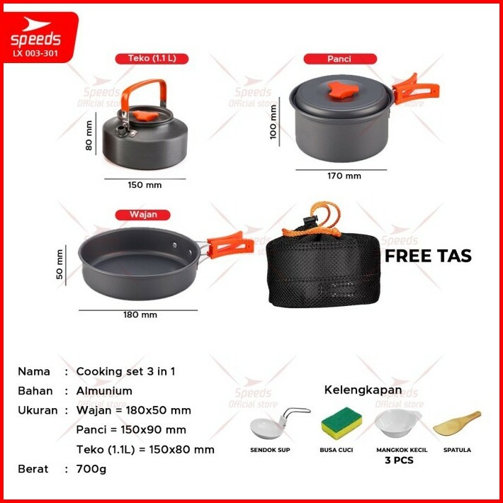 Speeds Alat Camping Masak Set 3in1 Nesting Cooking Outdoor 003-301