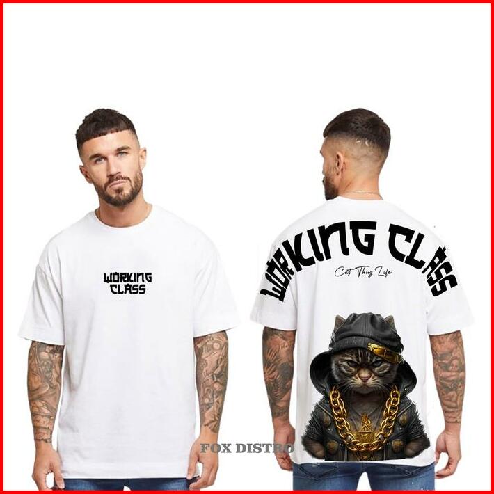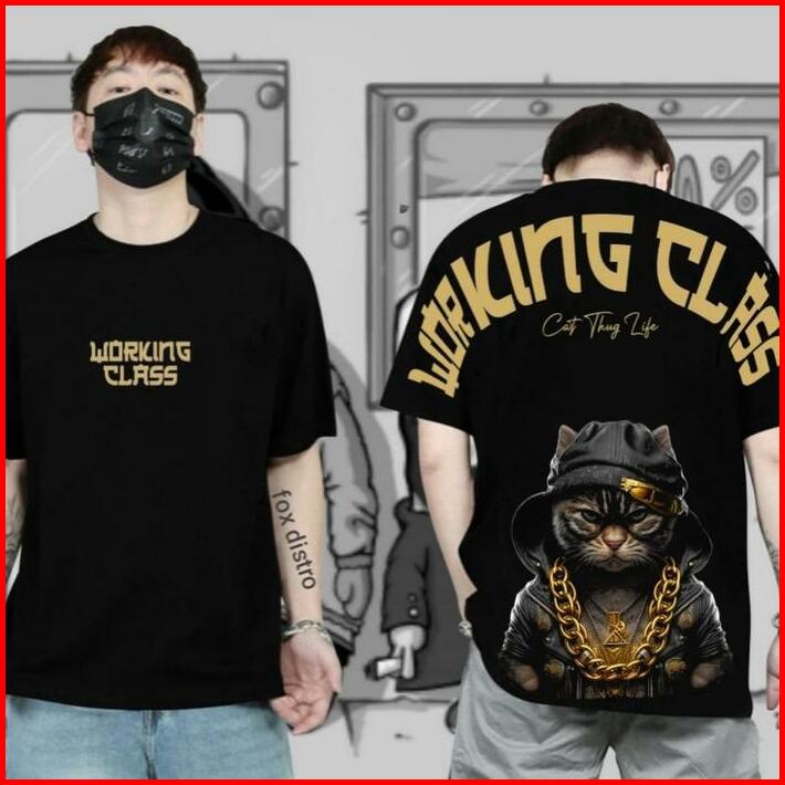 Atasan Kaos T-shirt Pria Distro Streetwear Motif Cat Working Warna Hitam Lengan Pendek Terbaru Bahan Katun