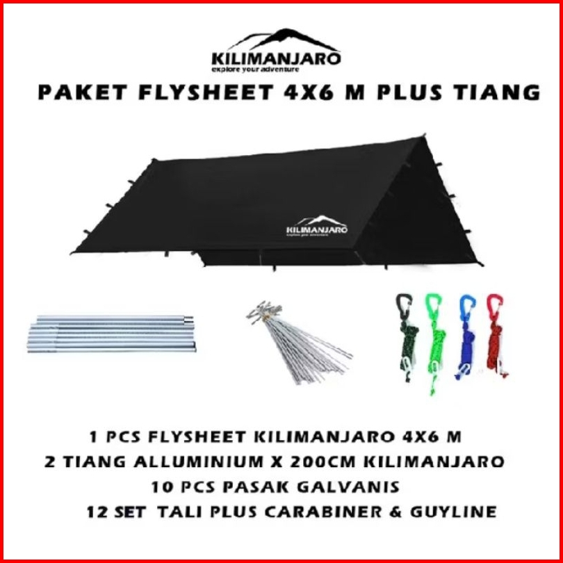 Paket Flysheet 4x6 M Plus Tiang Flysheet Kilimanjaro - Plus Pasak Tali