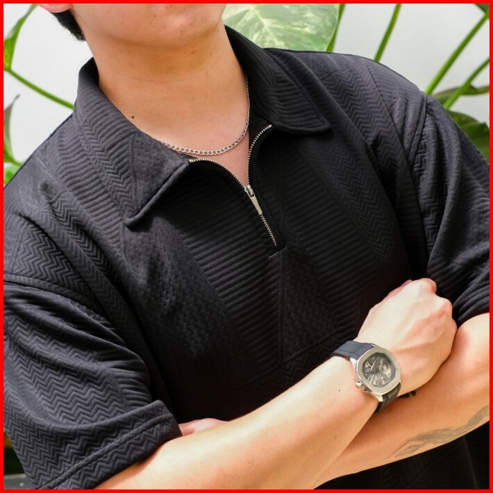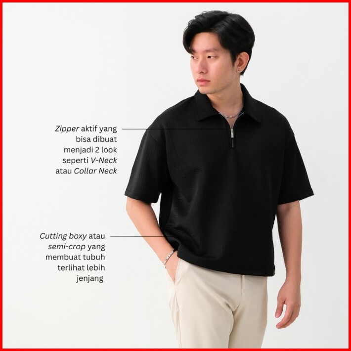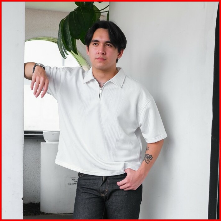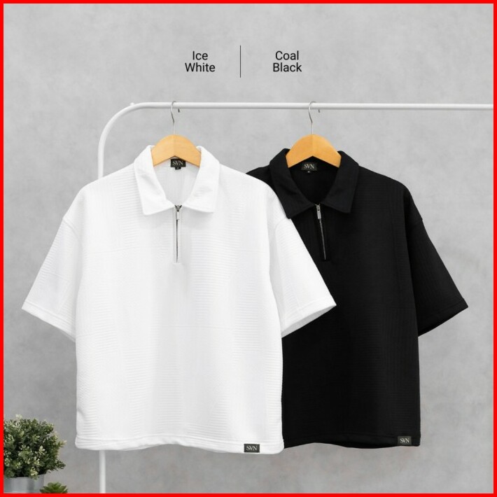 Sanvanina Zuma Zipper Boxy Polo Shirt Kaos Polo Knit Pria Atasan Pria Berkerah Boxy Fit Cutting