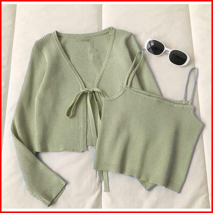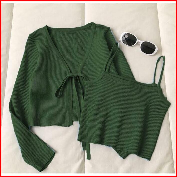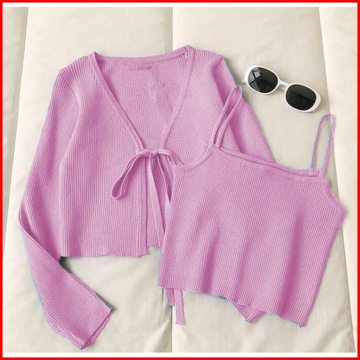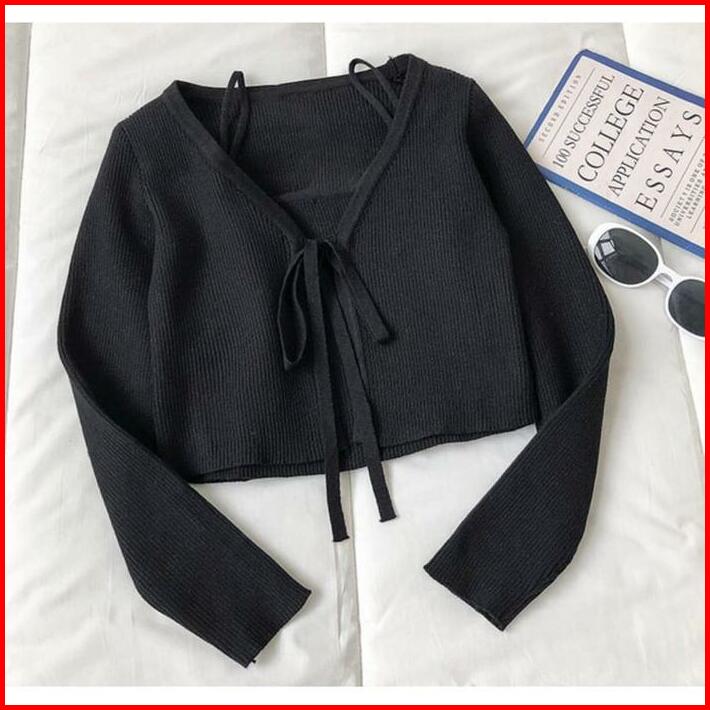 Cardigan Korea Set Crinuma Crop Set Baju Panjang Wanita Rib Denim Remaja Atasan