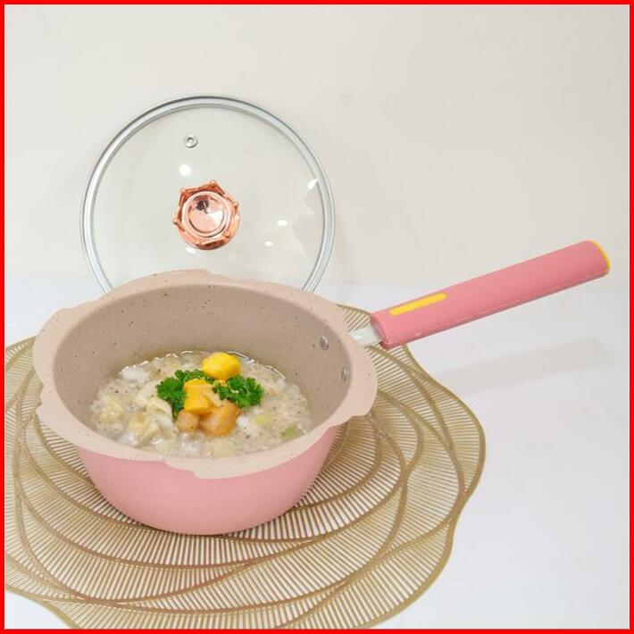 Izuma Panci Set 2 In 1 Bunga Sakura Granit Wajan Keramik Food Grade Aman Untuk Mpasi 20cm Milk Pot Sakura Kitchenware