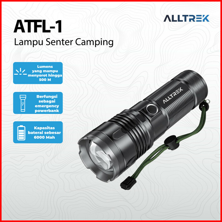 Alltrek Lampu Senter Camping Atfl-1 Super Bright Long Range Flashlight
