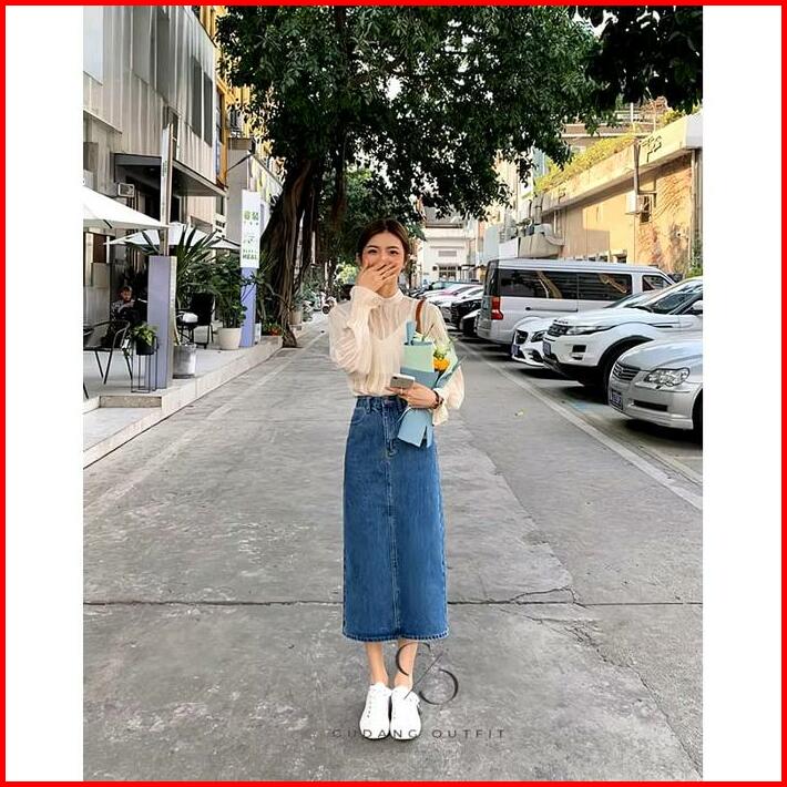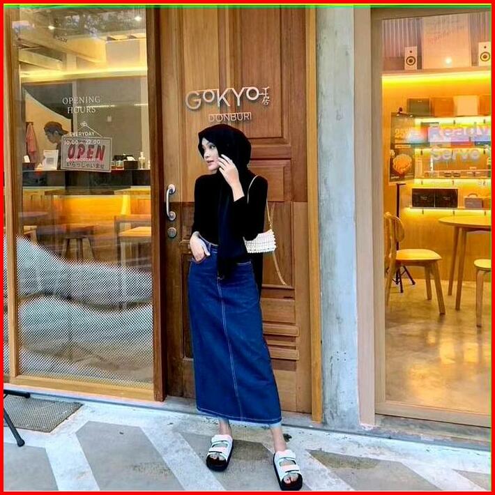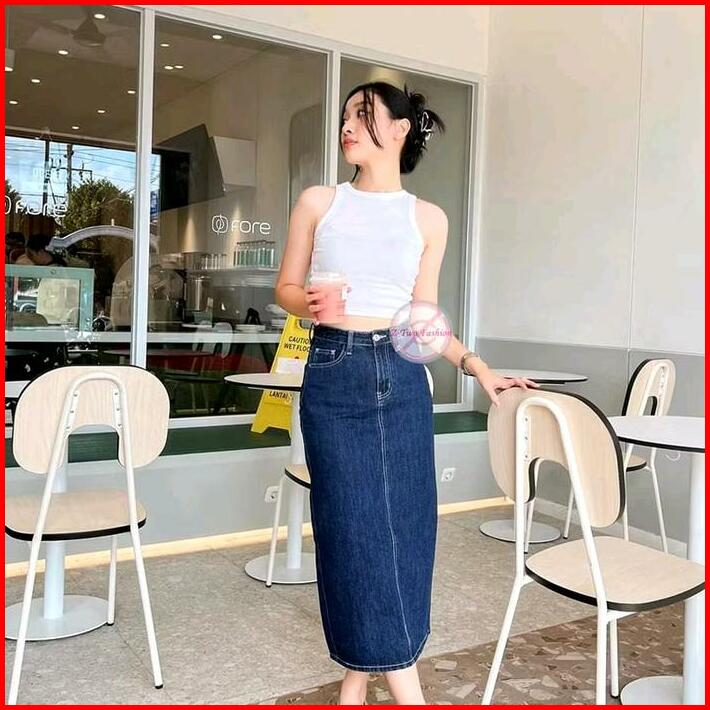 Rok Span Jeans Wanita Highwaist 7 9 Skirt Streach Belah Belakang Terbaru Skirt Panjang