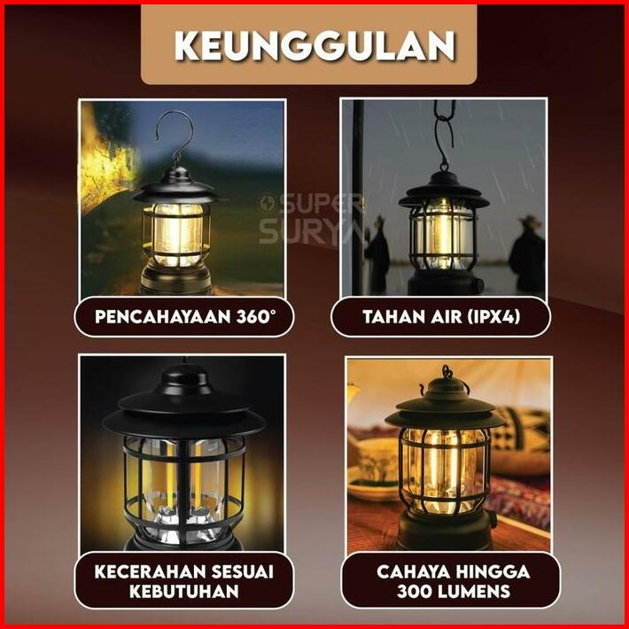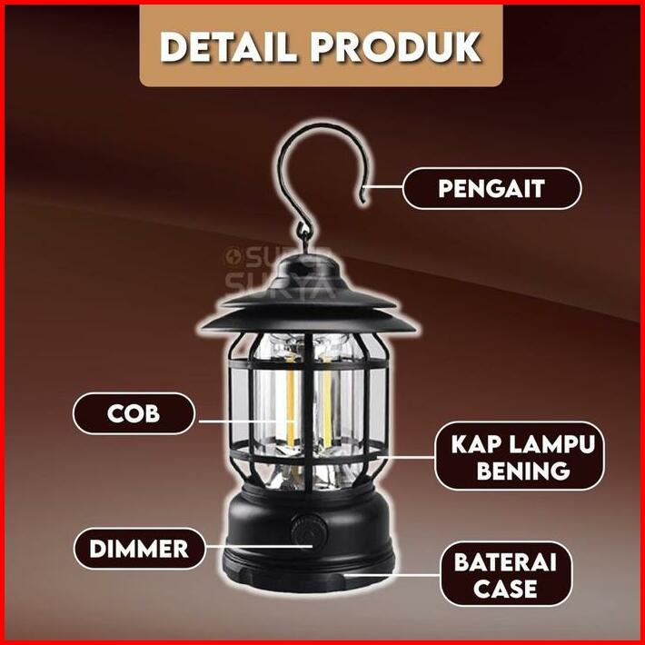 Lampu Lentera Retro Camping 3 Cob 300 Lumens Kemah Led Emergency Lamp Indonesia White